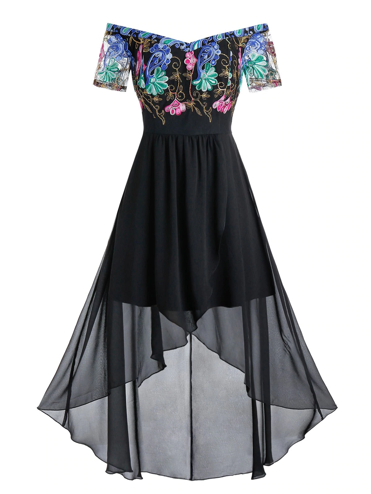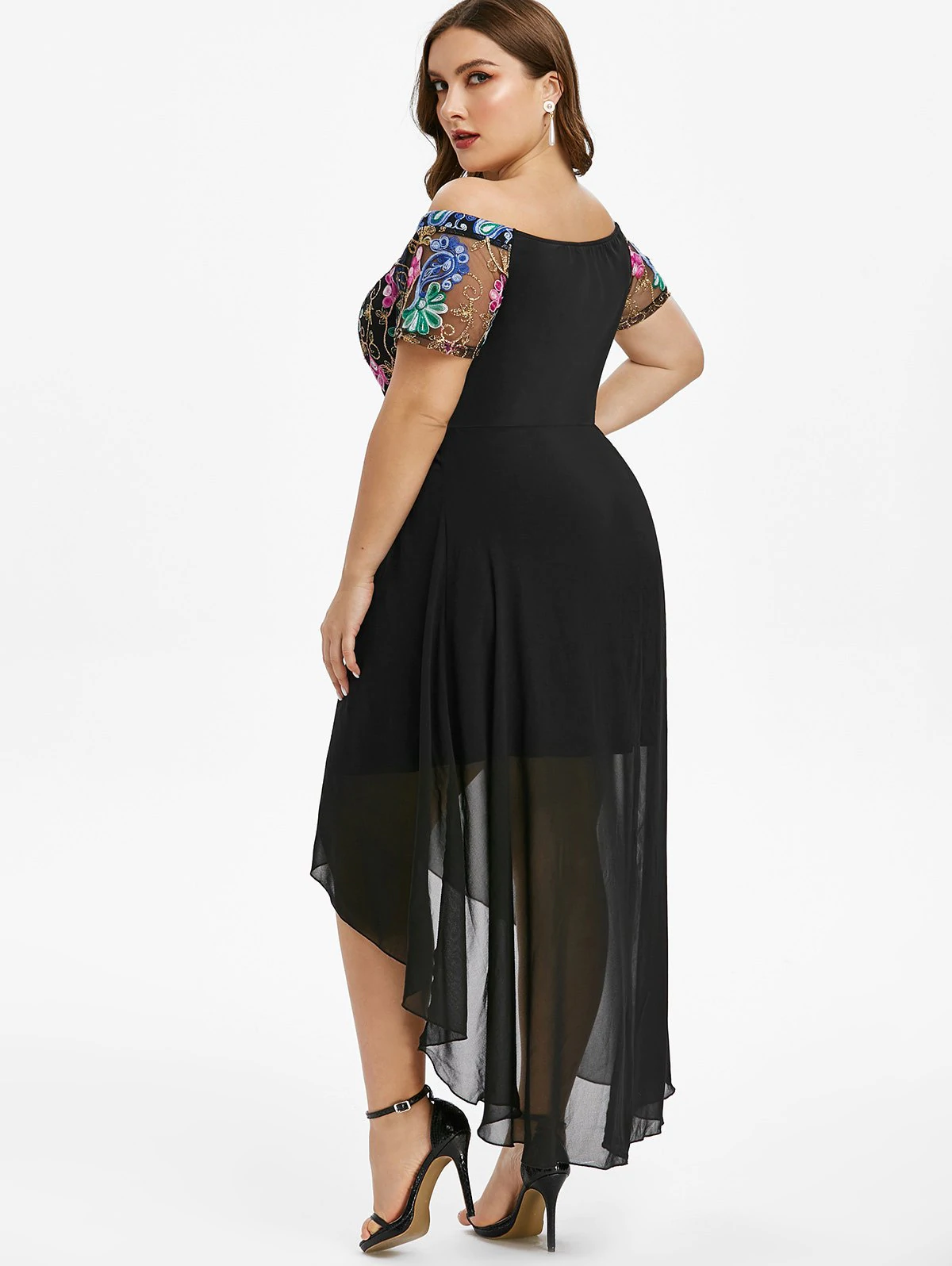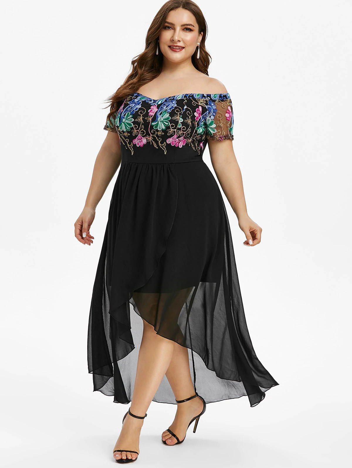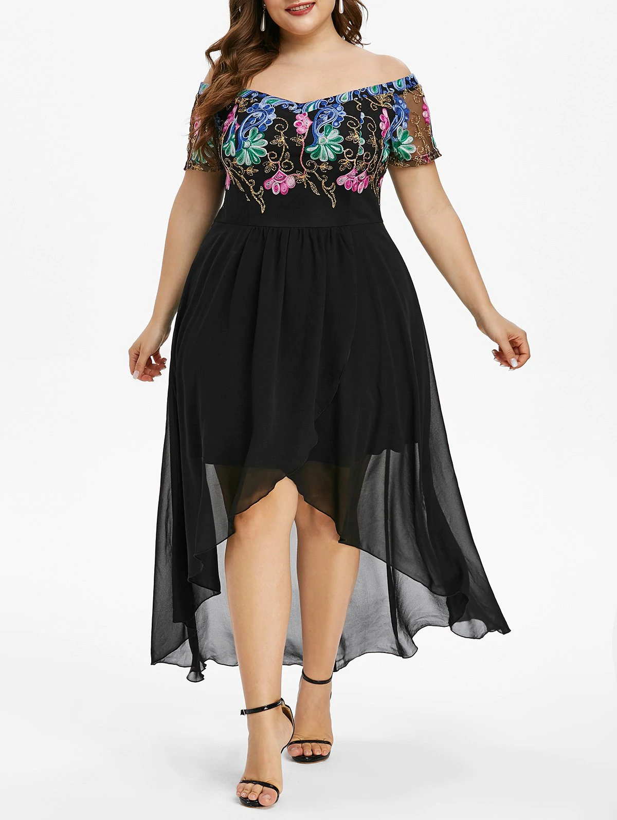 Plus Size Off The Shoulder Embroidered High Low Party Dress