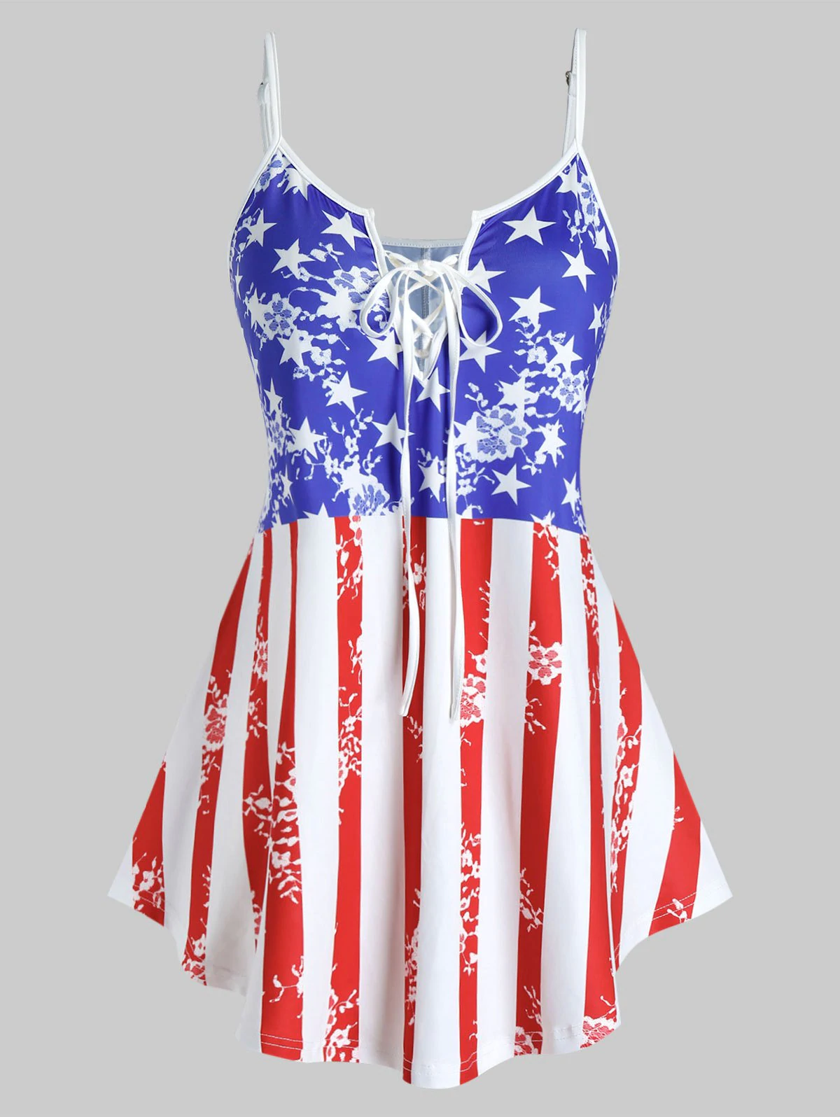 Plus Size Patriotic Lace Up American Flag Cami Top