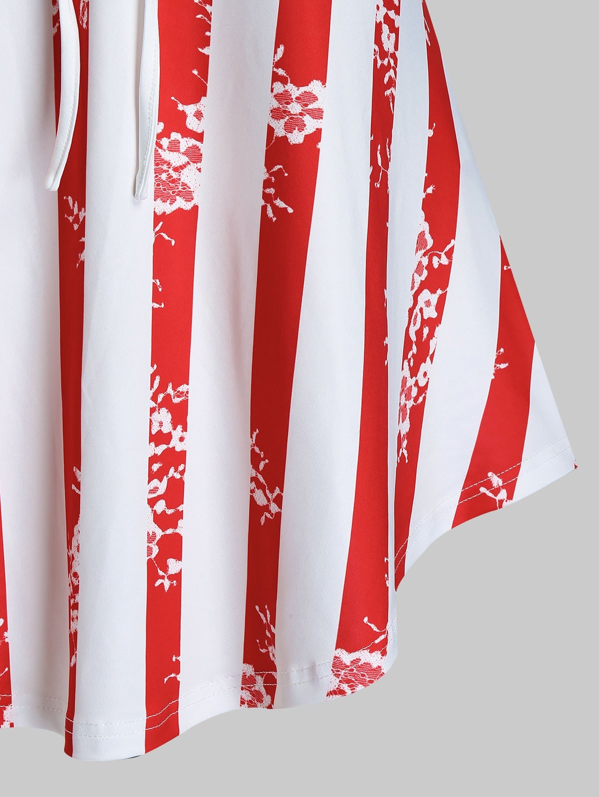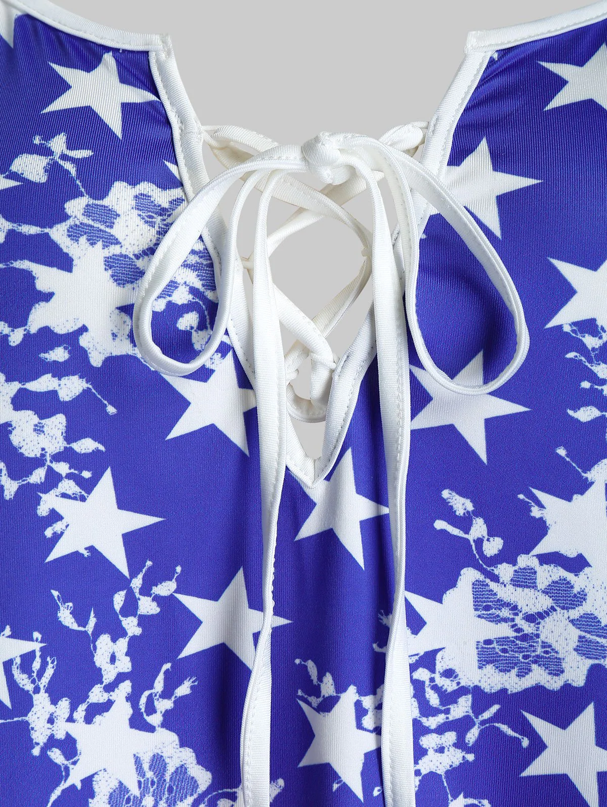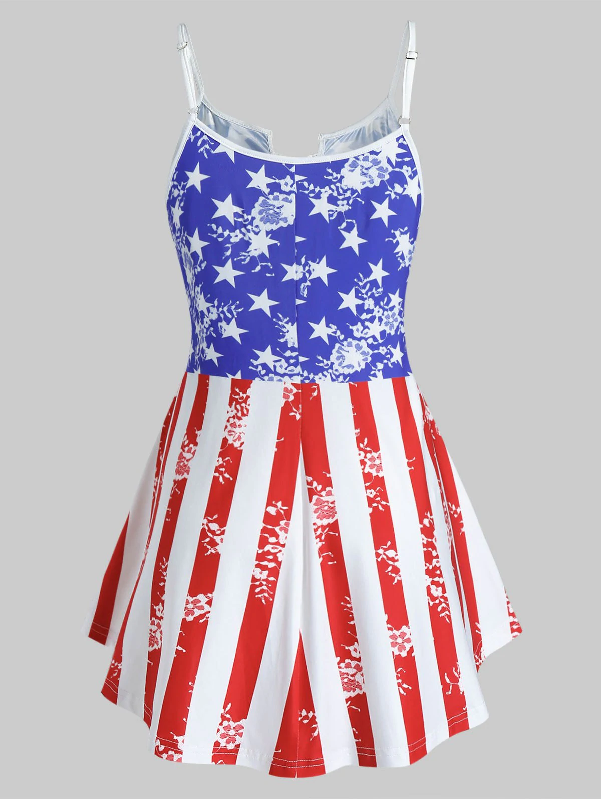 This camisole is printed with stars and stripes pattern separately, but combine them together, an American flag pattern is formed. The front has a V-notch design which is decorated with a chic lace-up detail to make it more inviting. And the hemline ends well below the hips for a figure-flattering look that you will love.