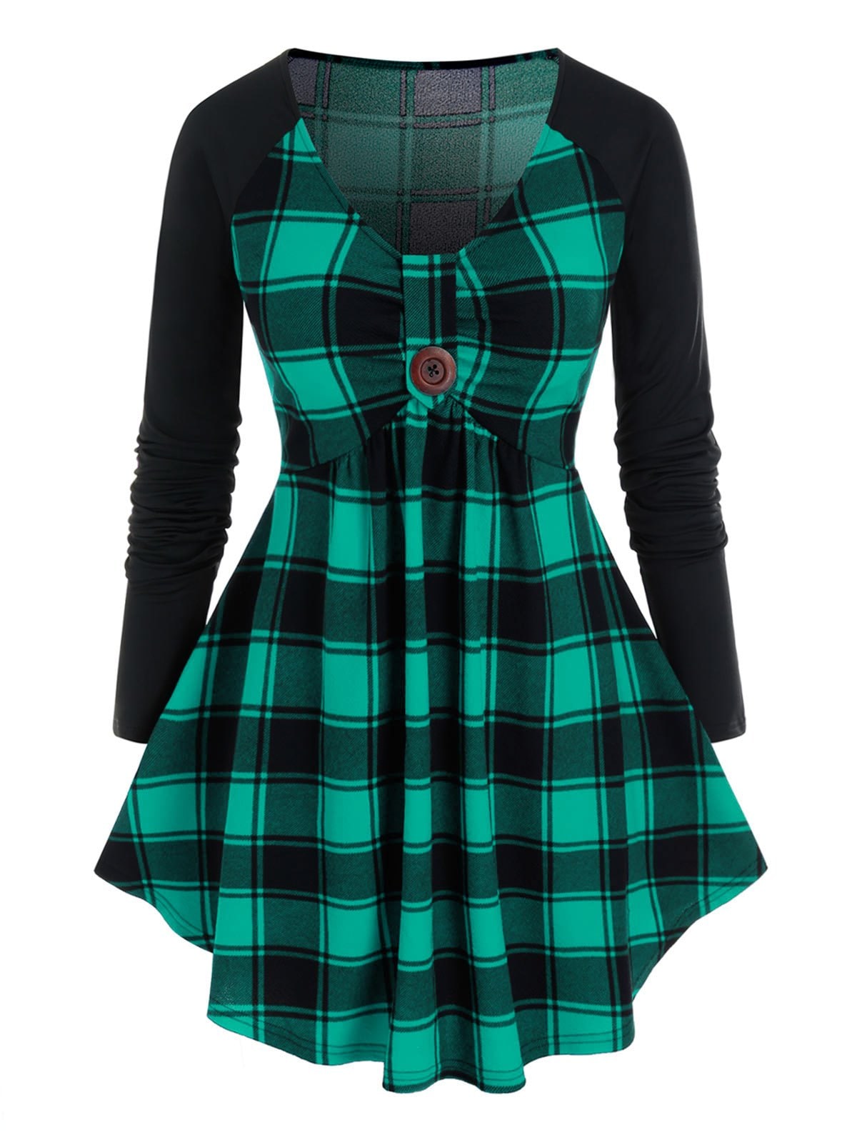 Plus Size Plaid Button Raglan Sleeve Top