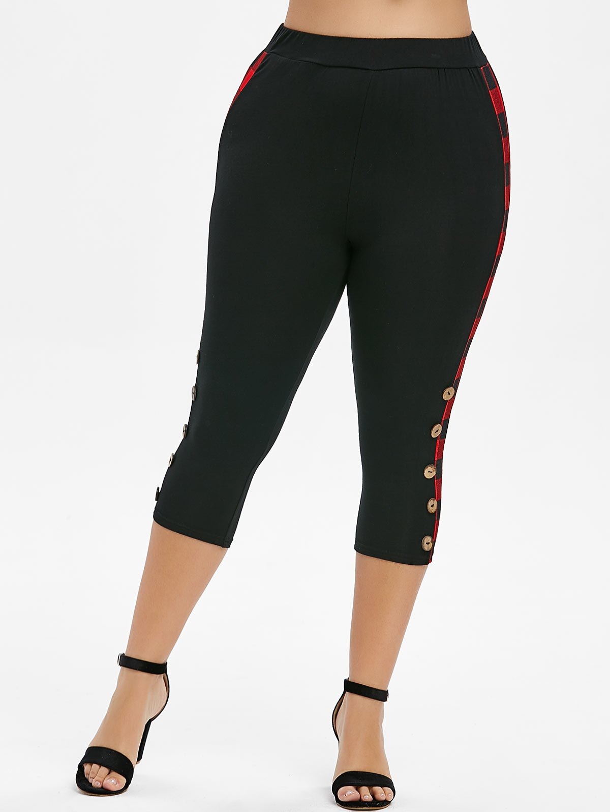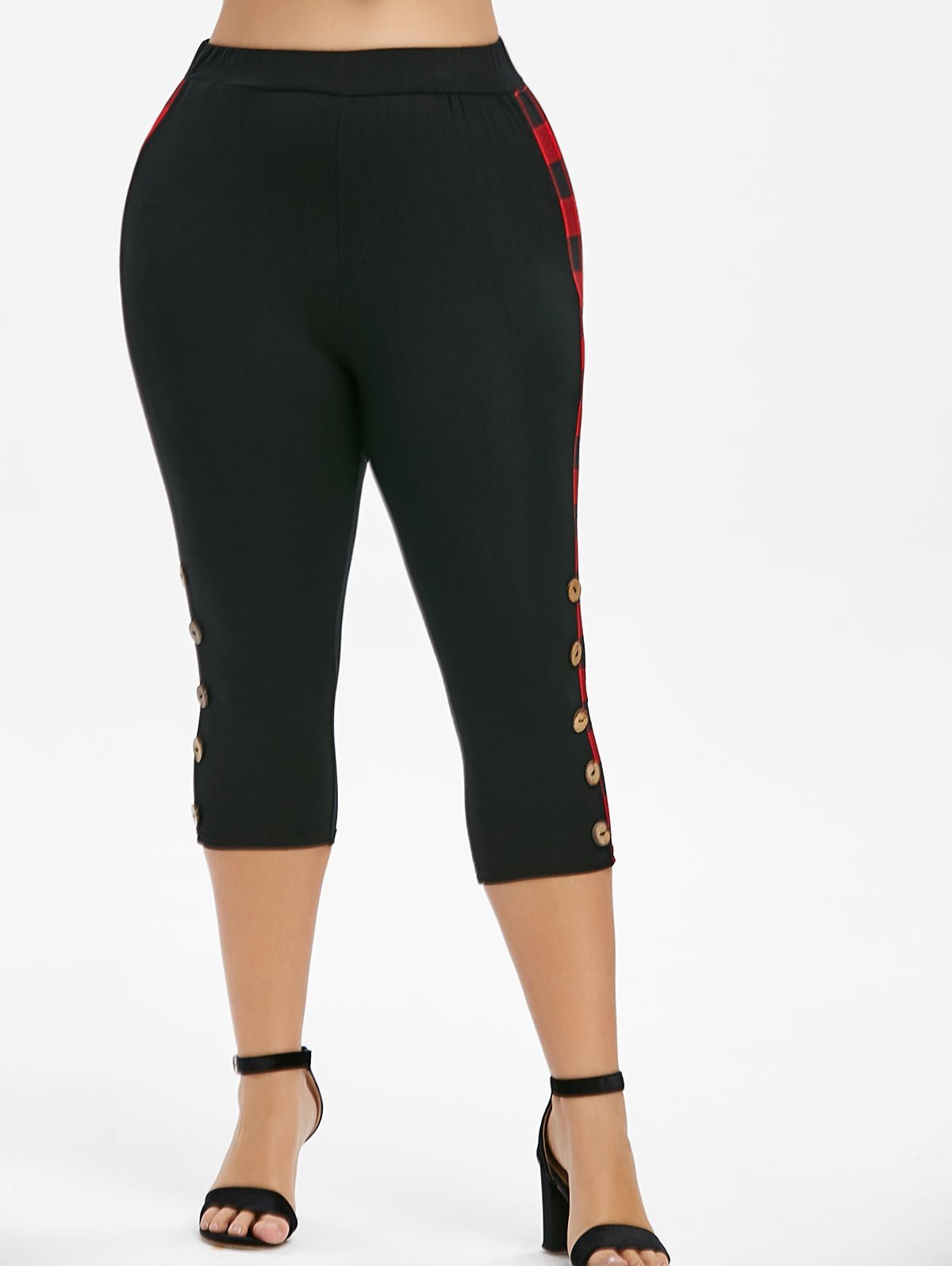 3 reviews for Plus Size Plaid Buttons Cropped Leggings