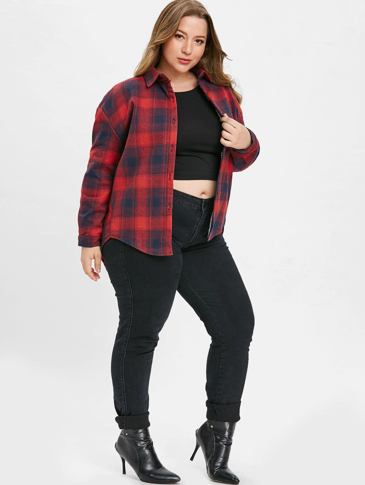Plus Size Plaid Casual Coat