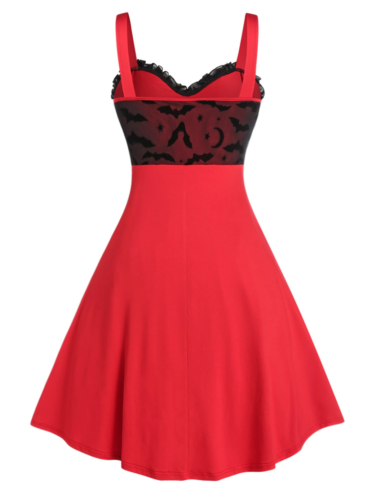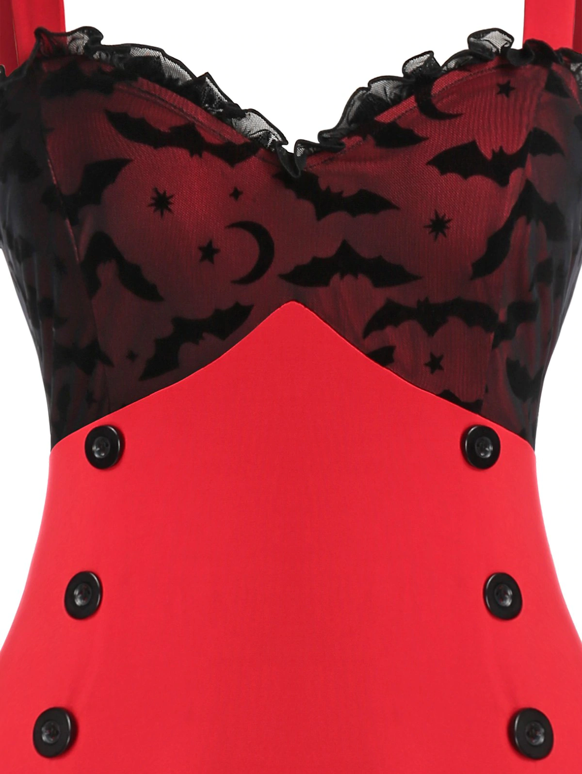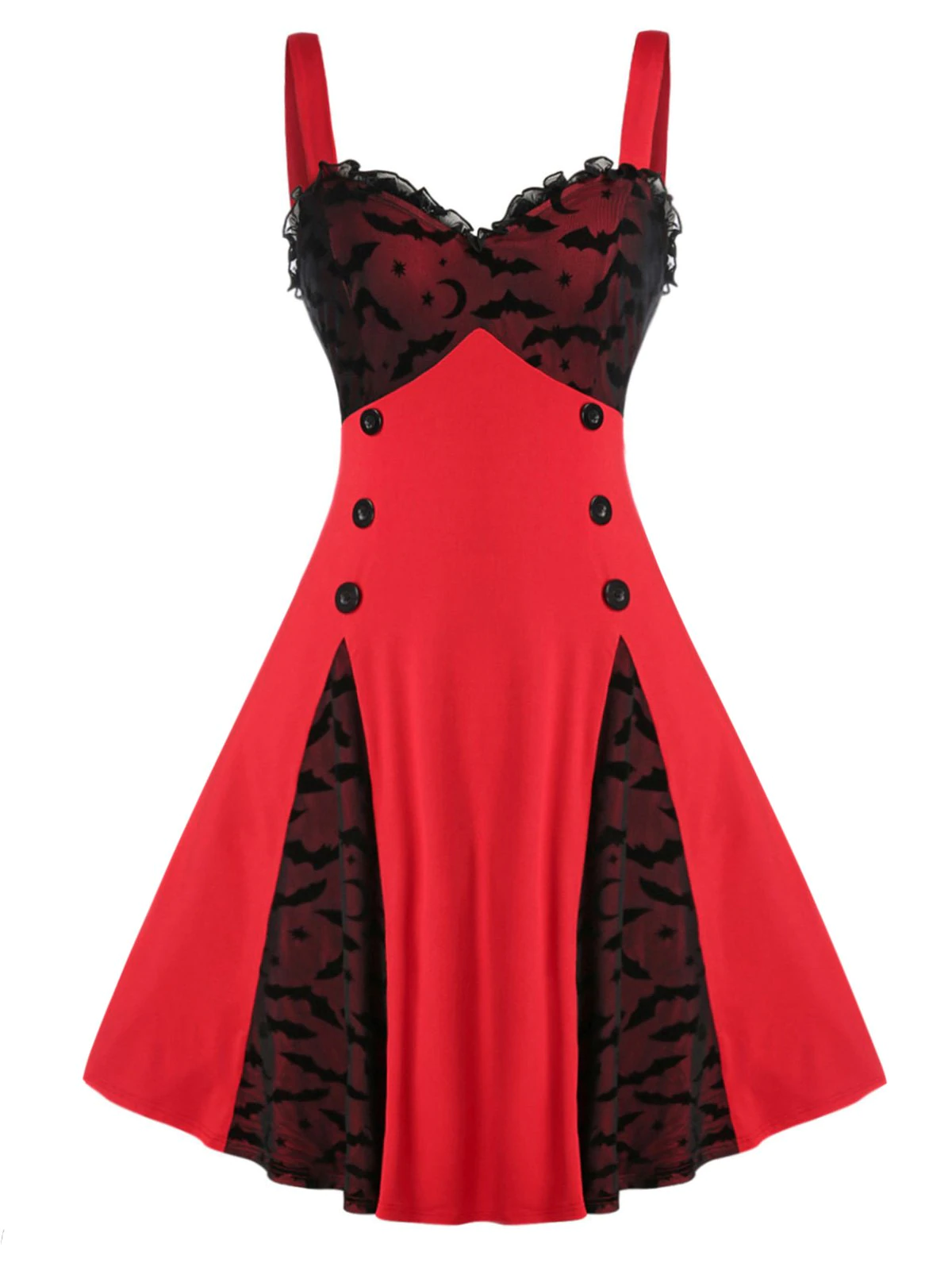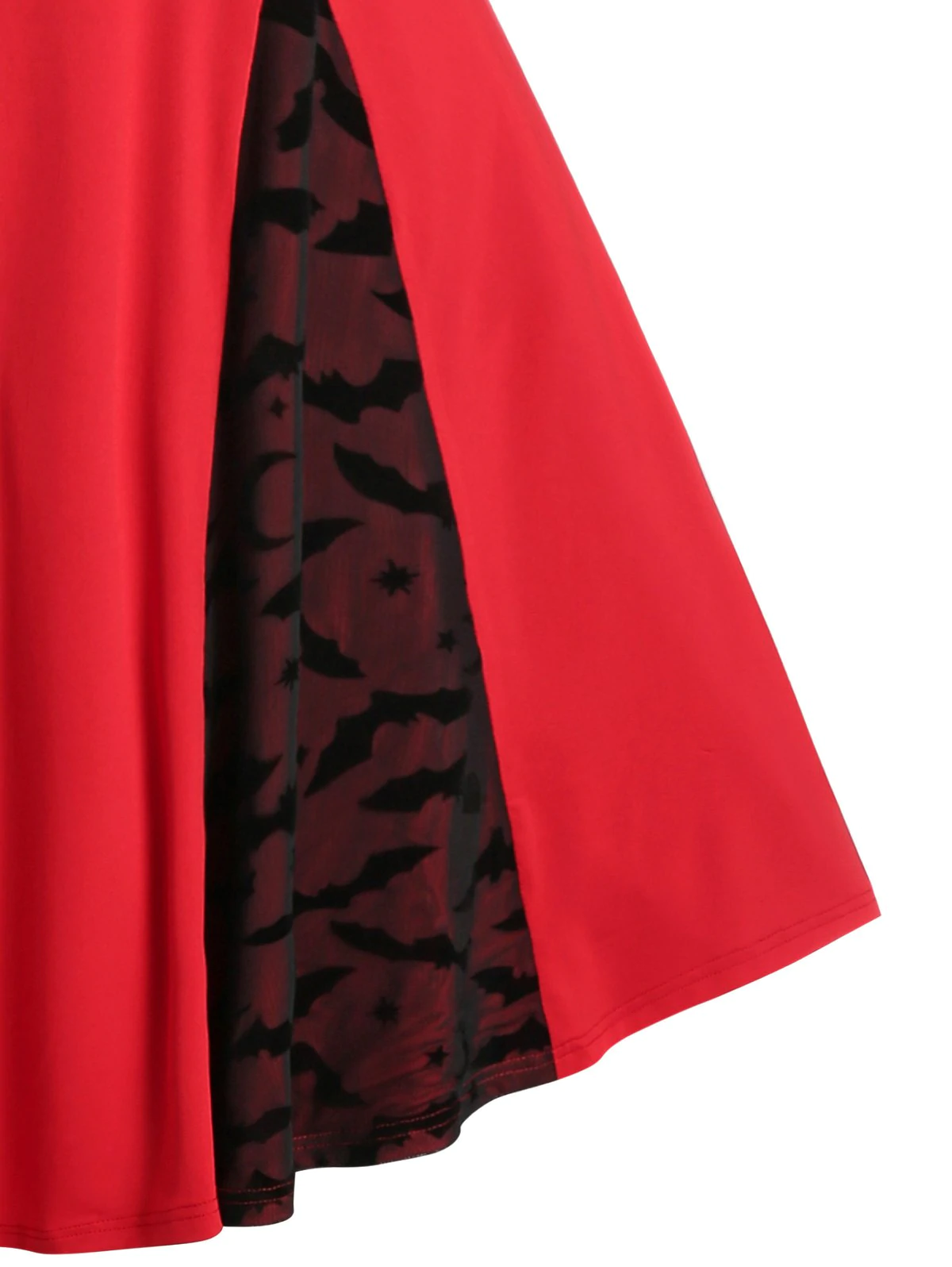 Plus Size Retro Colorblock Bat Pattern Button Dress