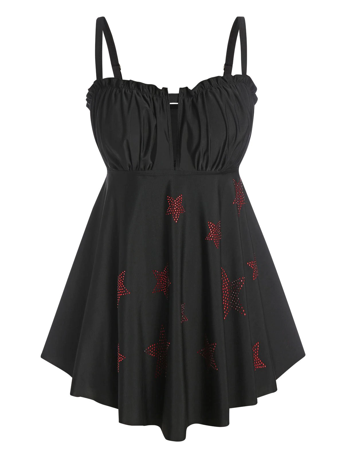 Plus Size Rhinestone Star Ruched Bust Tankini Swimwear