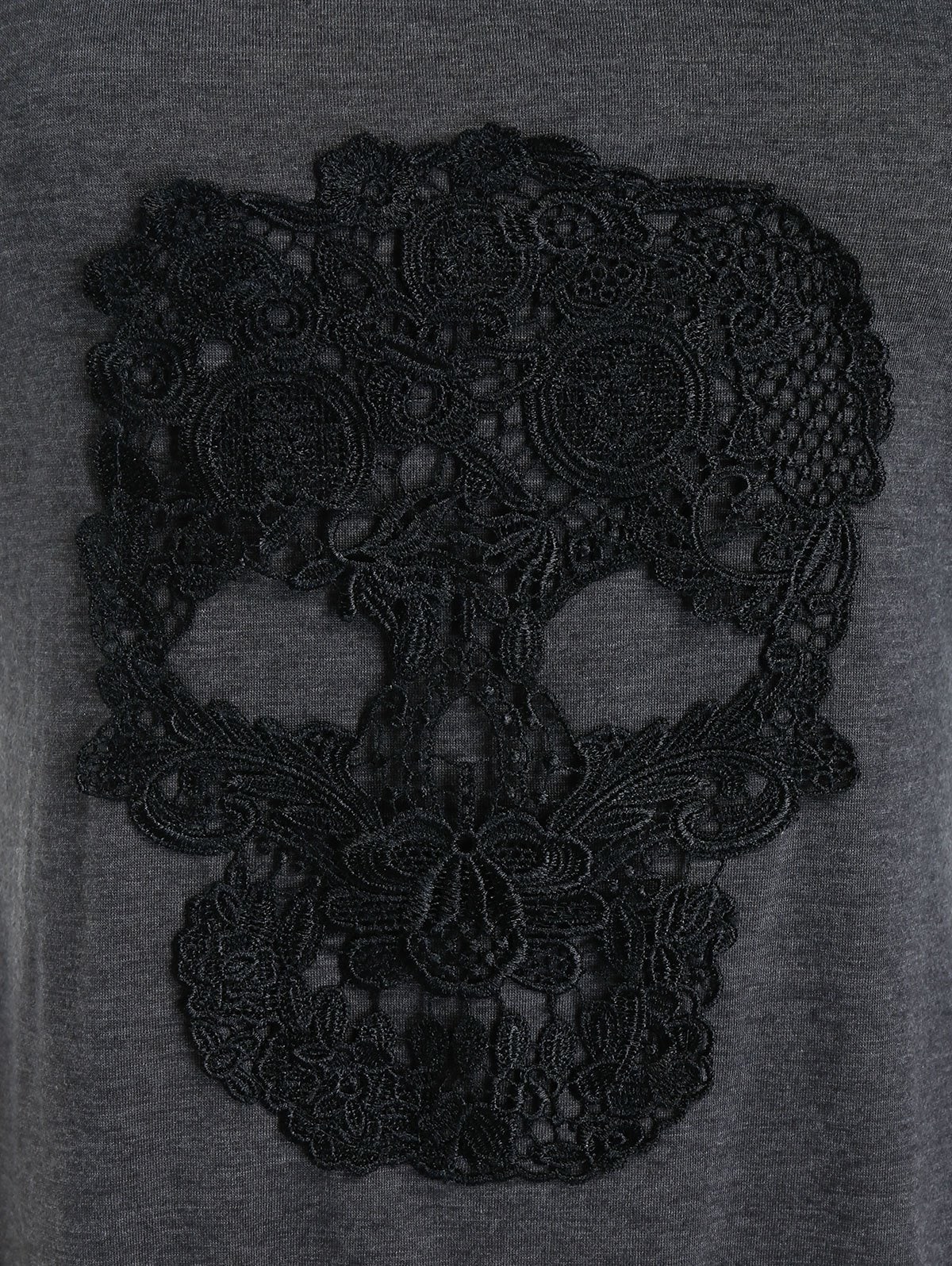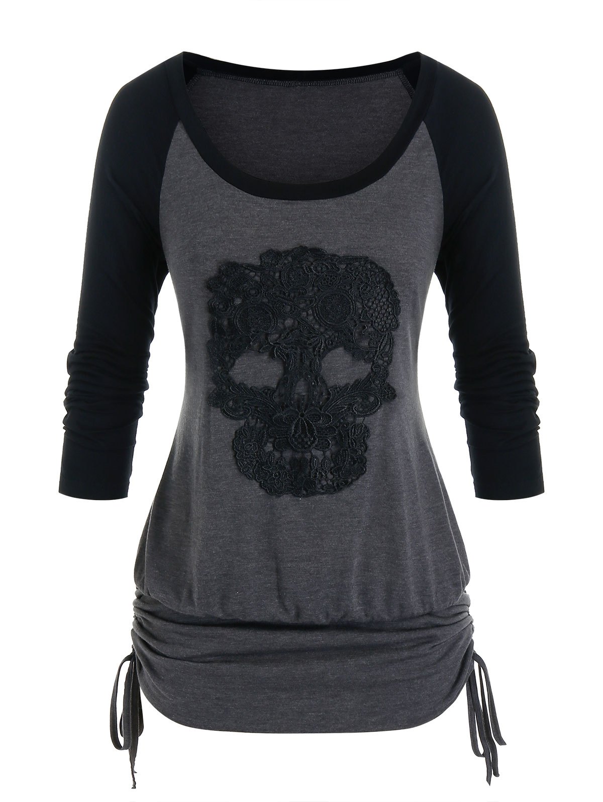 Plus Size Skull Crochet Cinched Tie Long Sleeve Tee