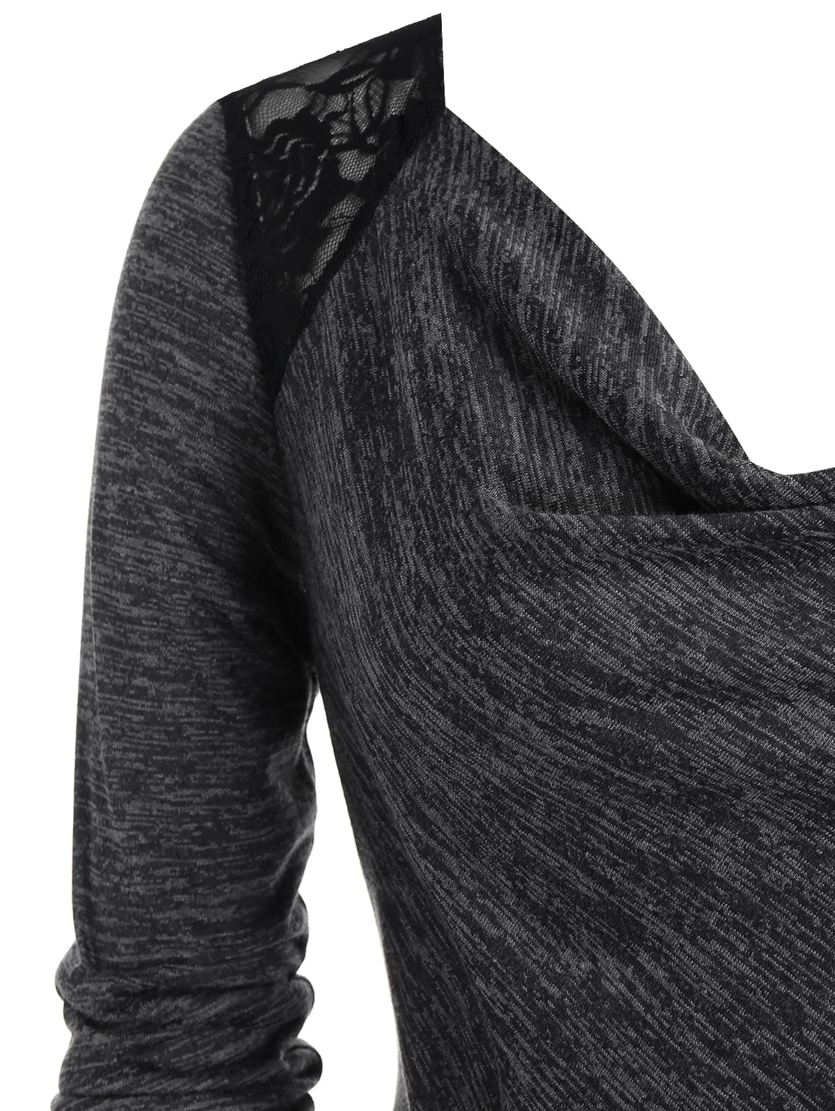 Plus Size Space Dye Lace Insert Sheer Long Sleeve Tee