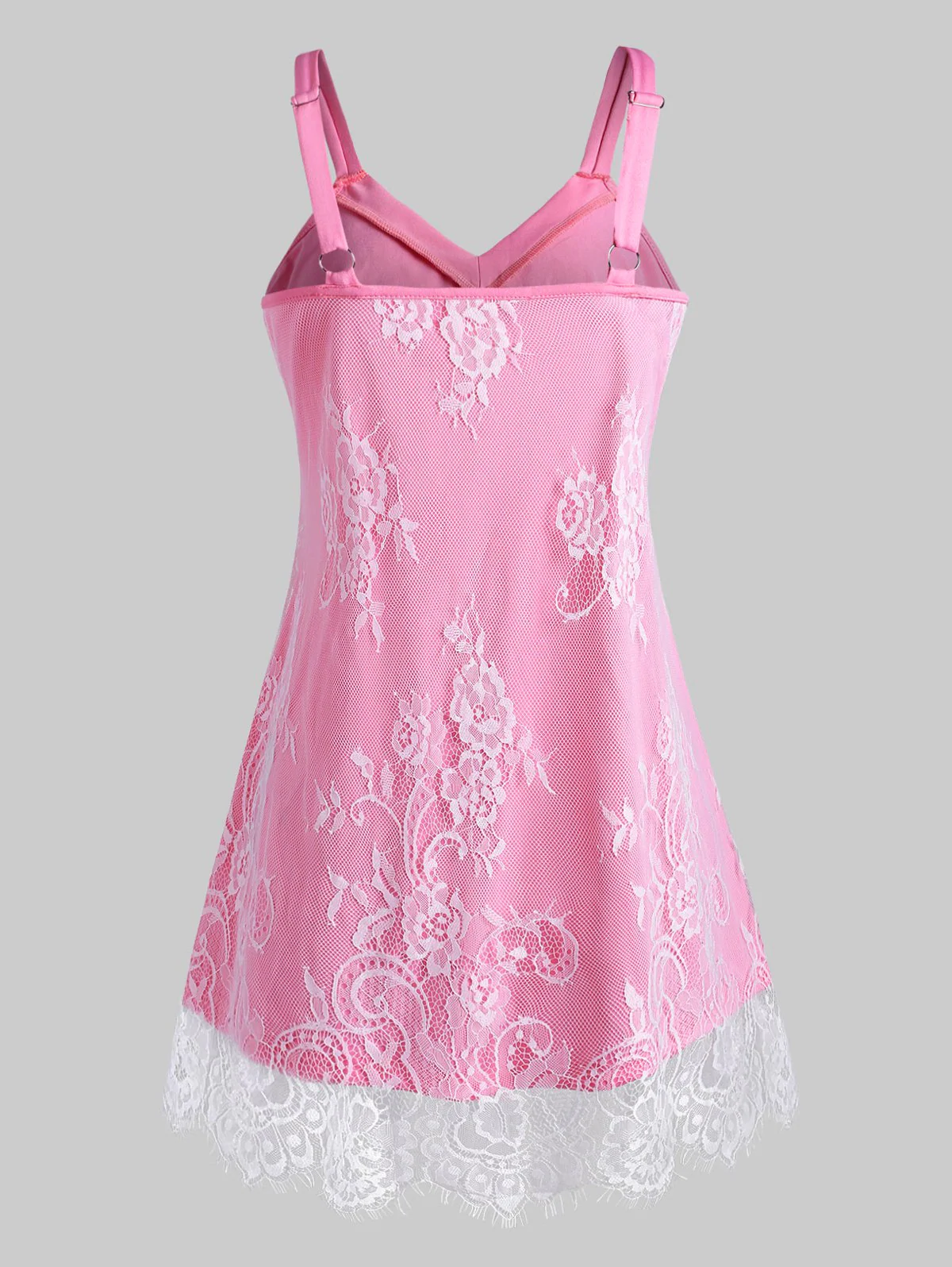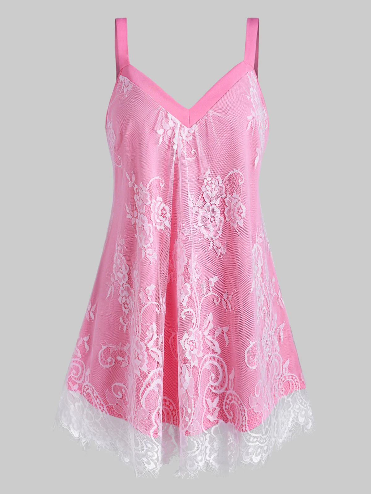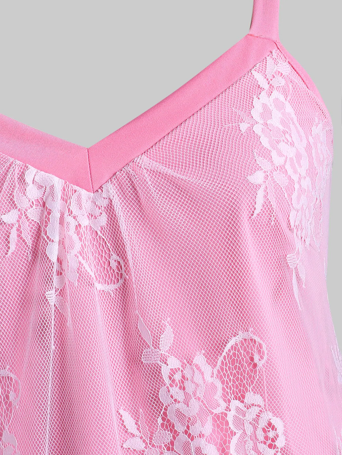 Plus Size Sweetheart Neck Floral Lace Overlay Tank Top
