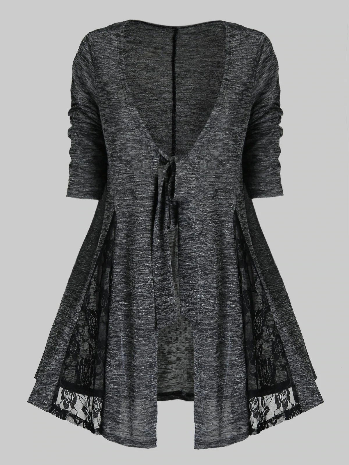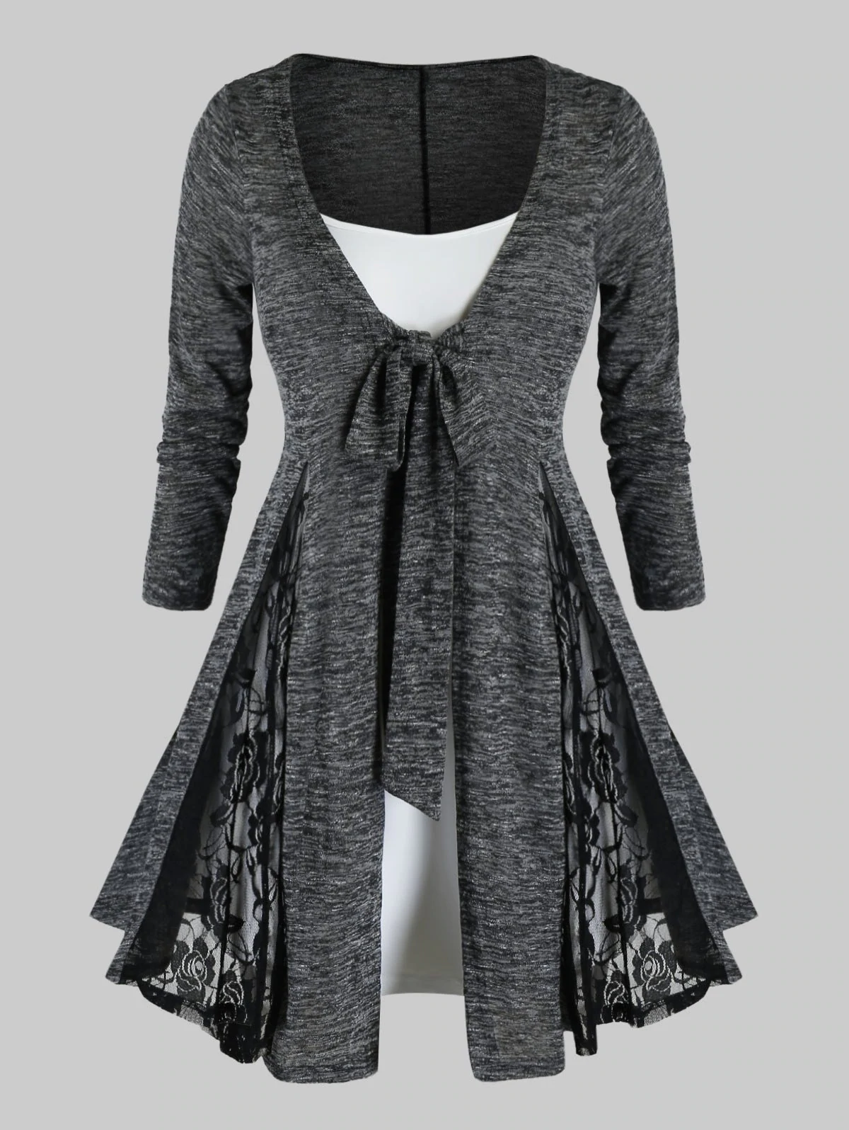 Plus Size Tie Front Lace Insert Cardigan With Cami Top Set