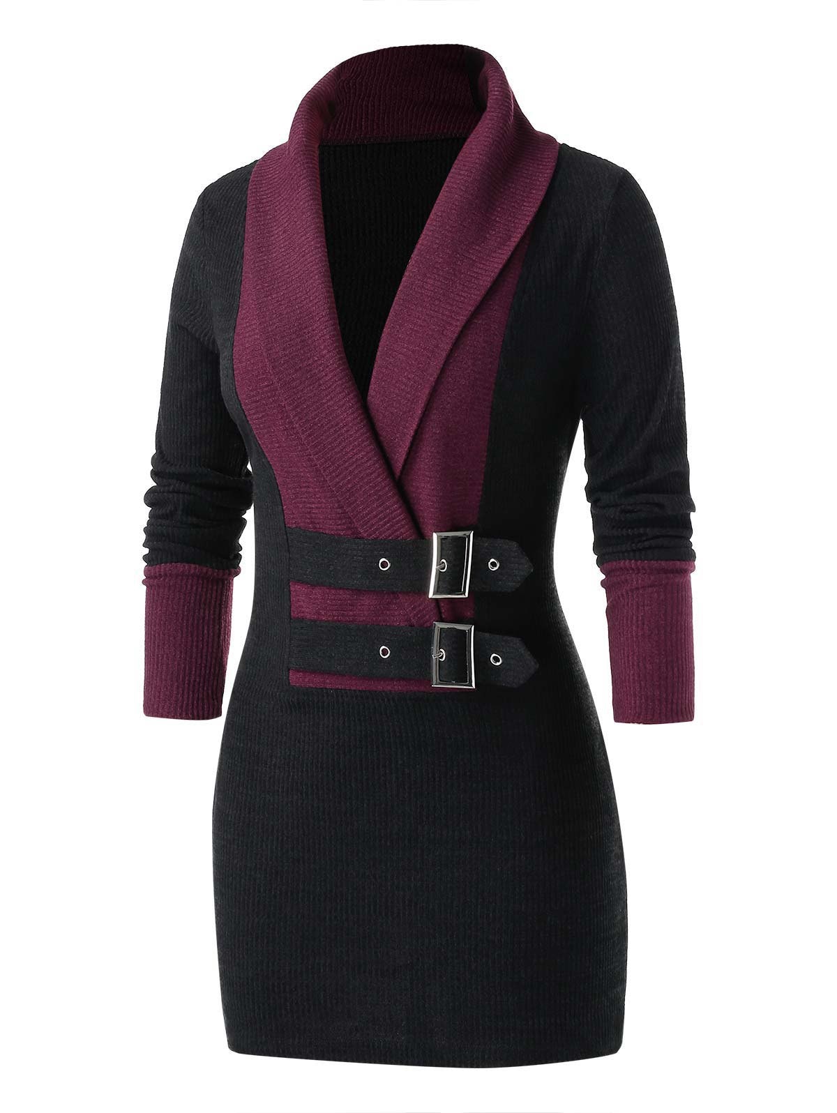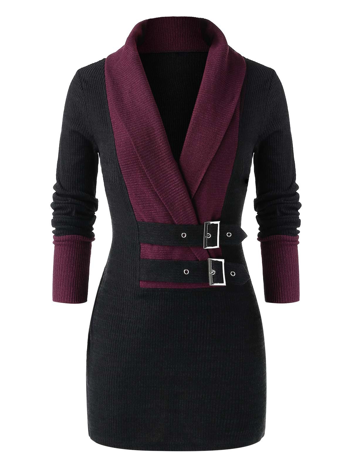 Plus Size Tunic Two Tone Turn-down Collar Sweater