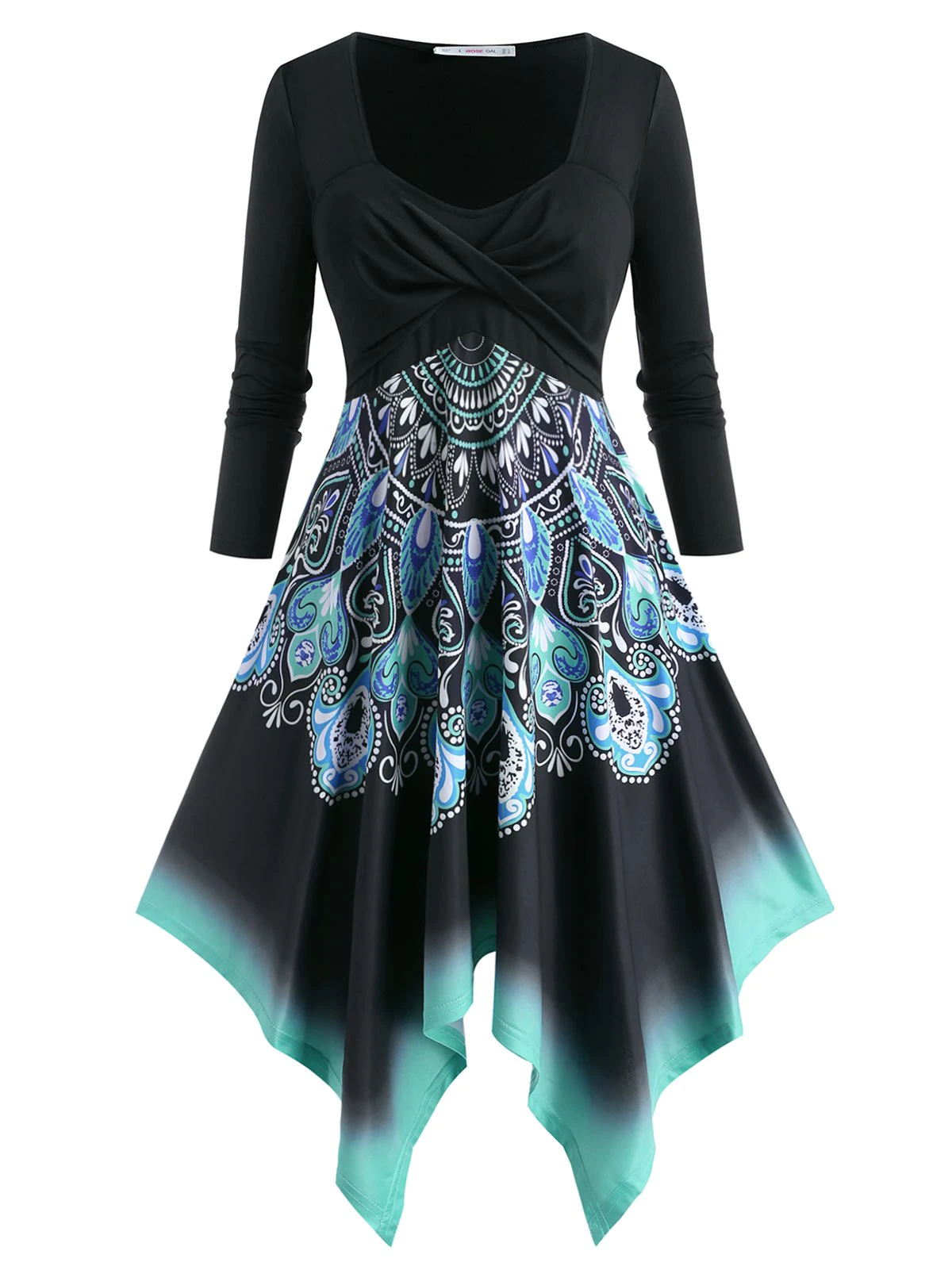 Plus Size Twist Printed Handkerchief Long Sleeve Dress