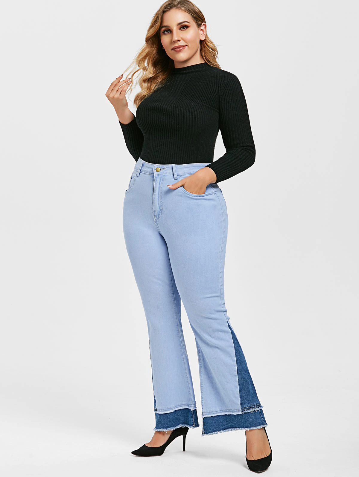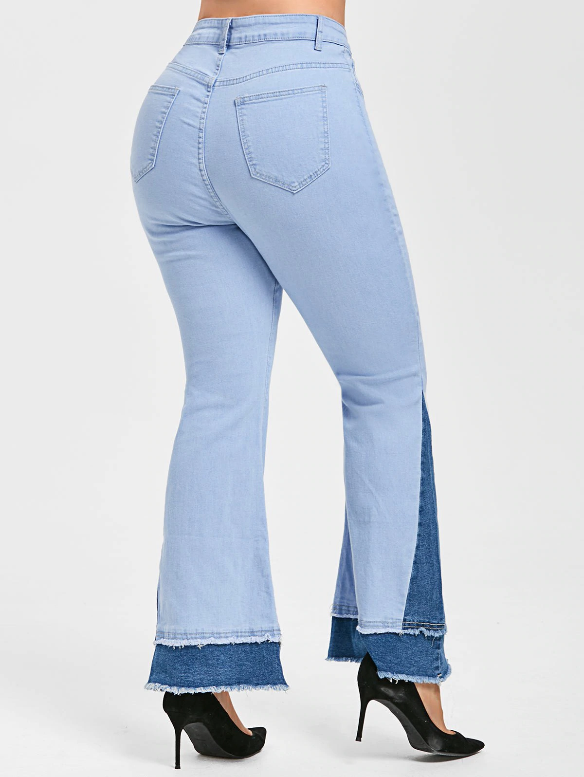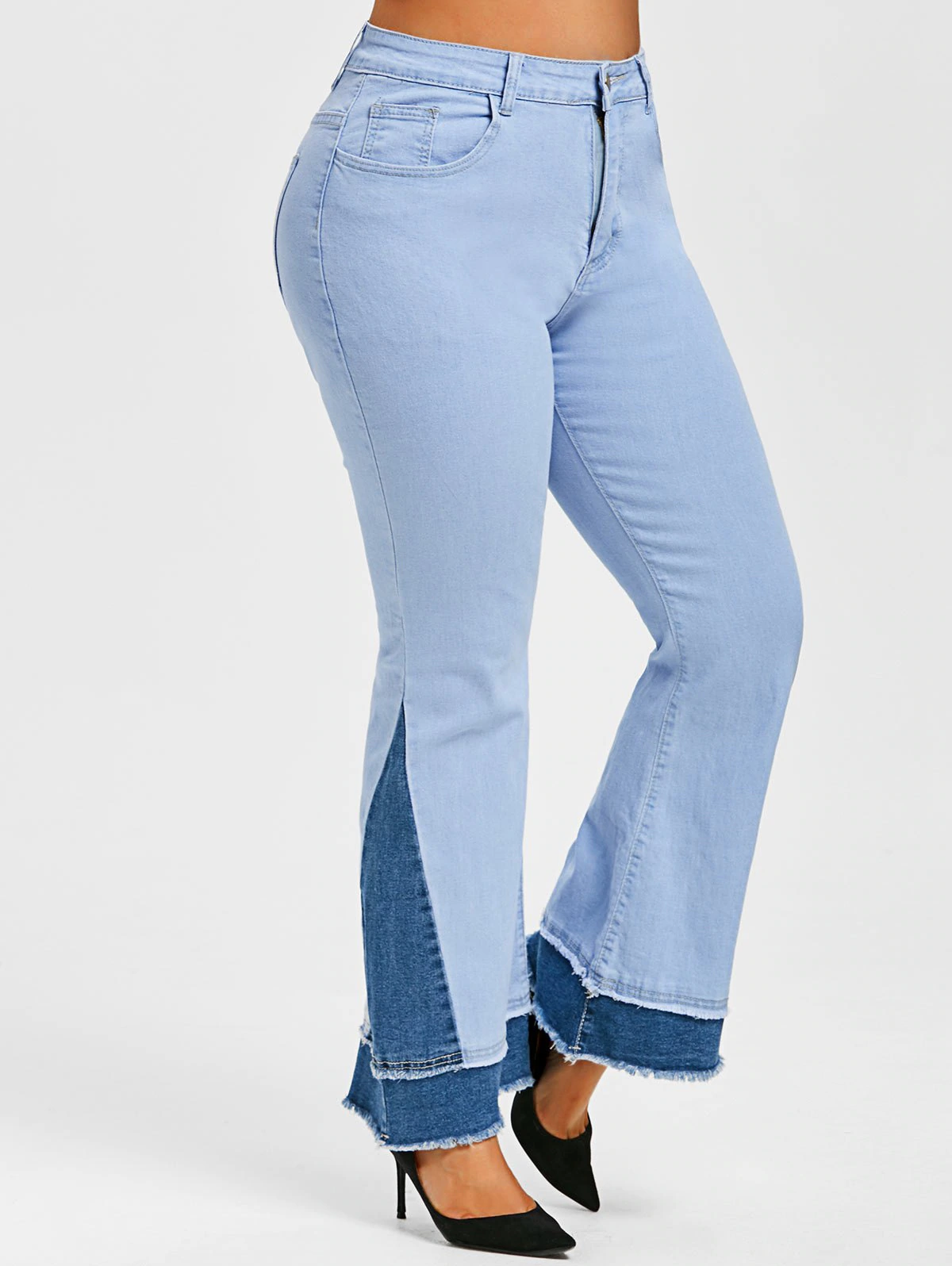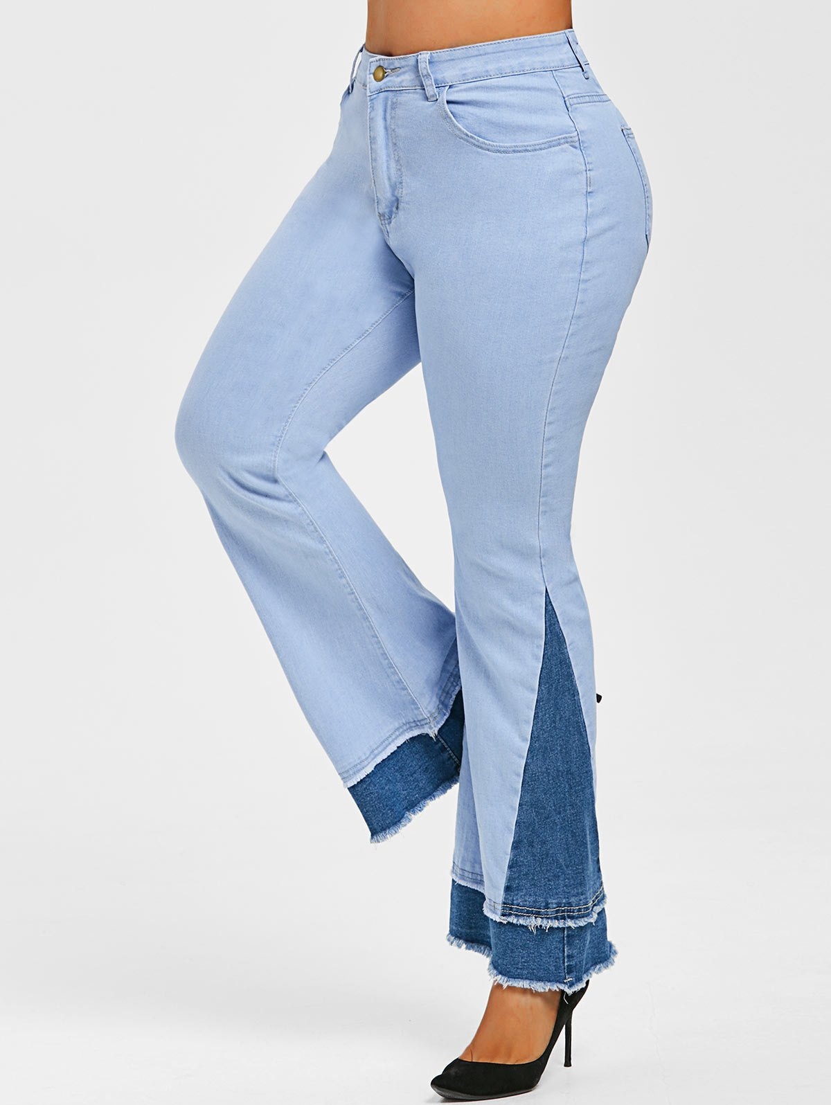 Plus Size Two Tone Frayed Bell Bottom Jeans