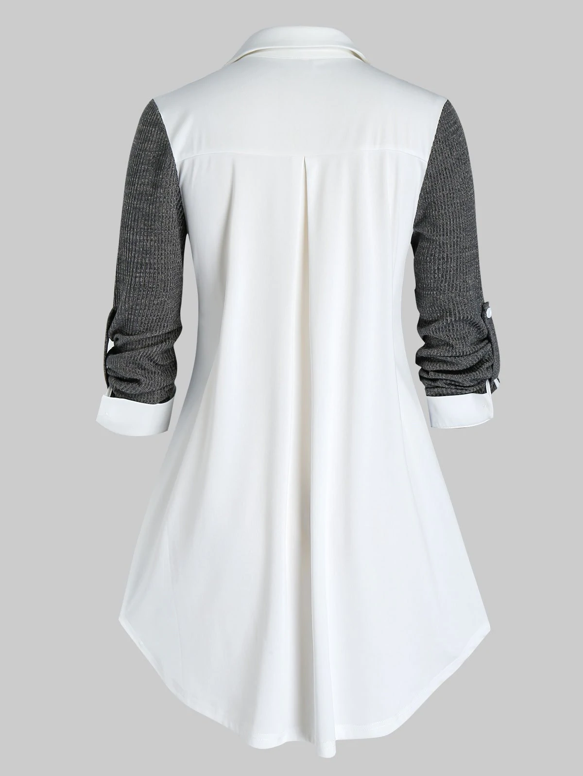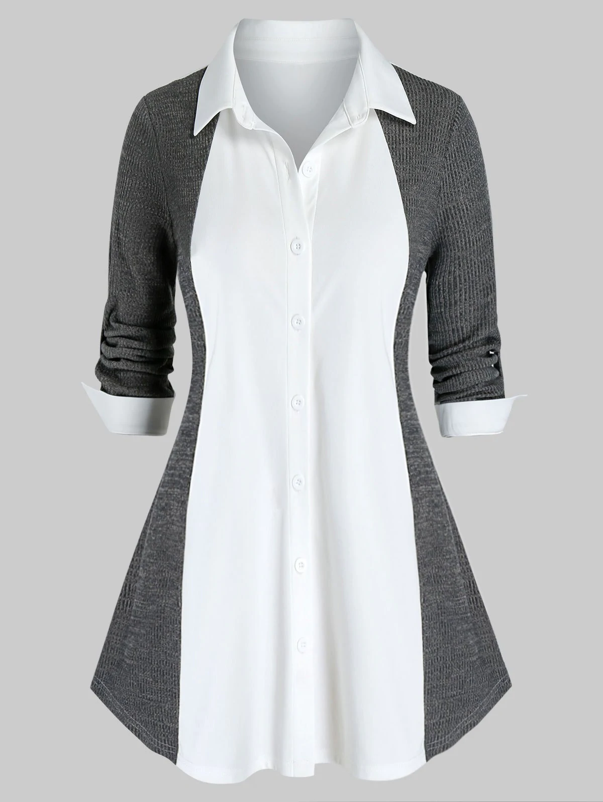 Plus Size Two Tone Knit Roll Up Sleeve Tunic Blouse