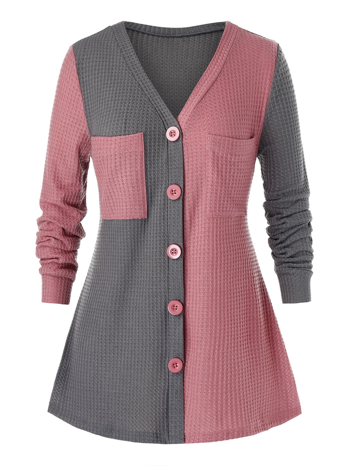 Plus Size Two Tone Pocket Contrast Knit Sweater