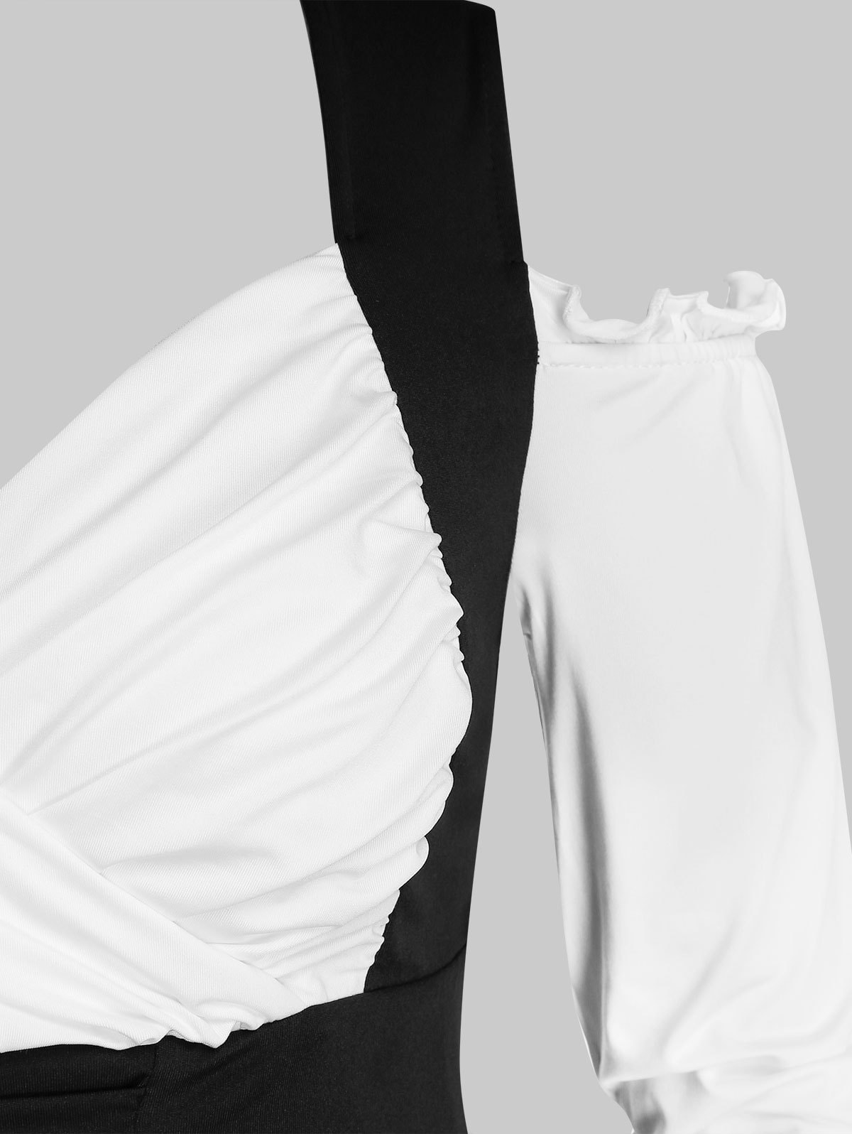 Plus Size Two Tone Ruched Frilled Long Sleeve Tee