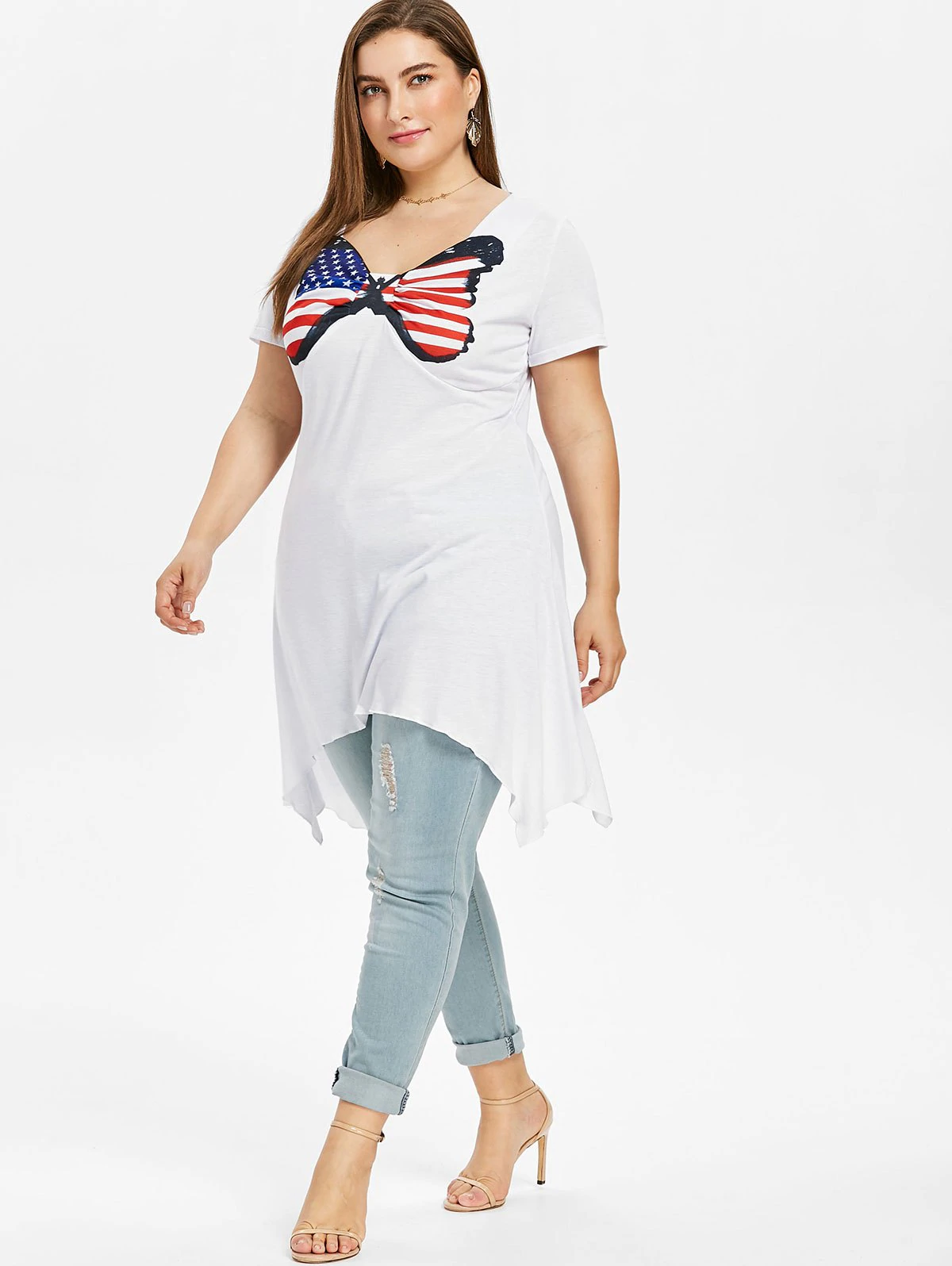 Plus Size USA Flag Asymmetrical T-shirt