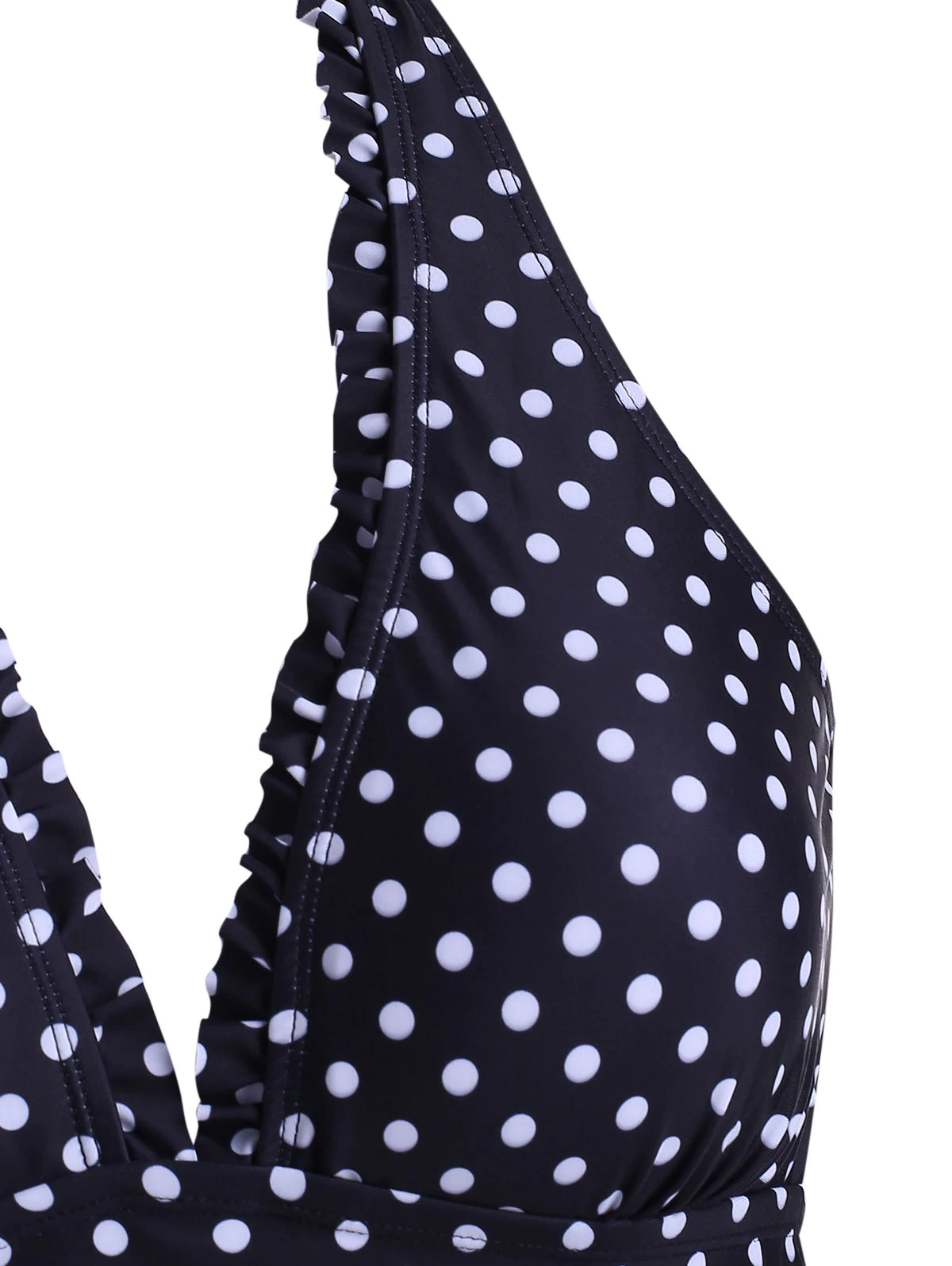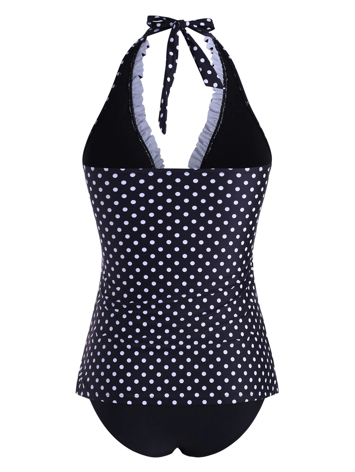 Polka Dot Frilled Halter Backless Tankini Swimwear
