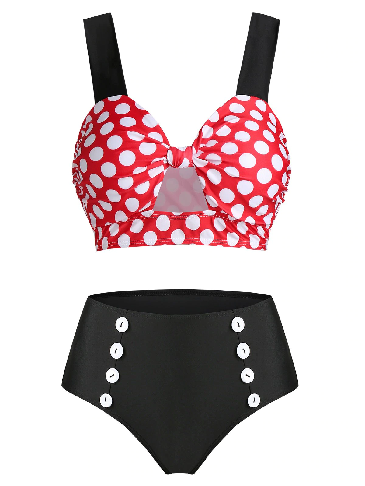 1 review for Polka Dot Print Knotted Padded Bikini Set