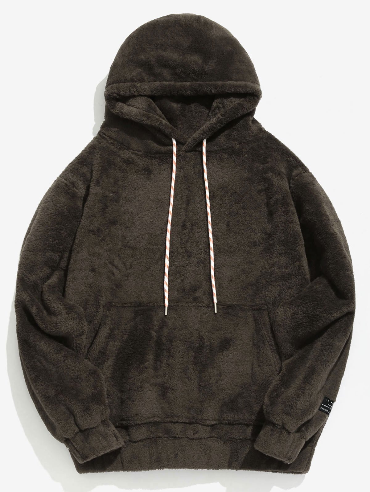 Pouch Pocket Patch Detail Fluffy Hoodie