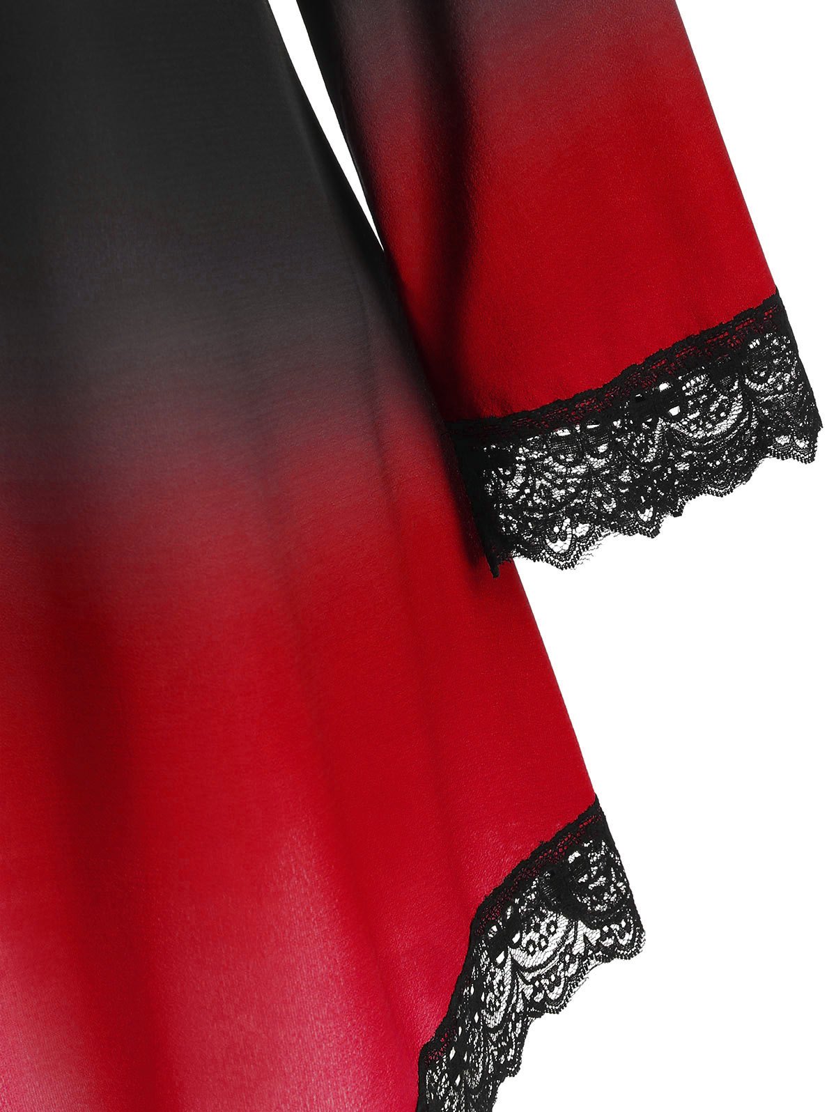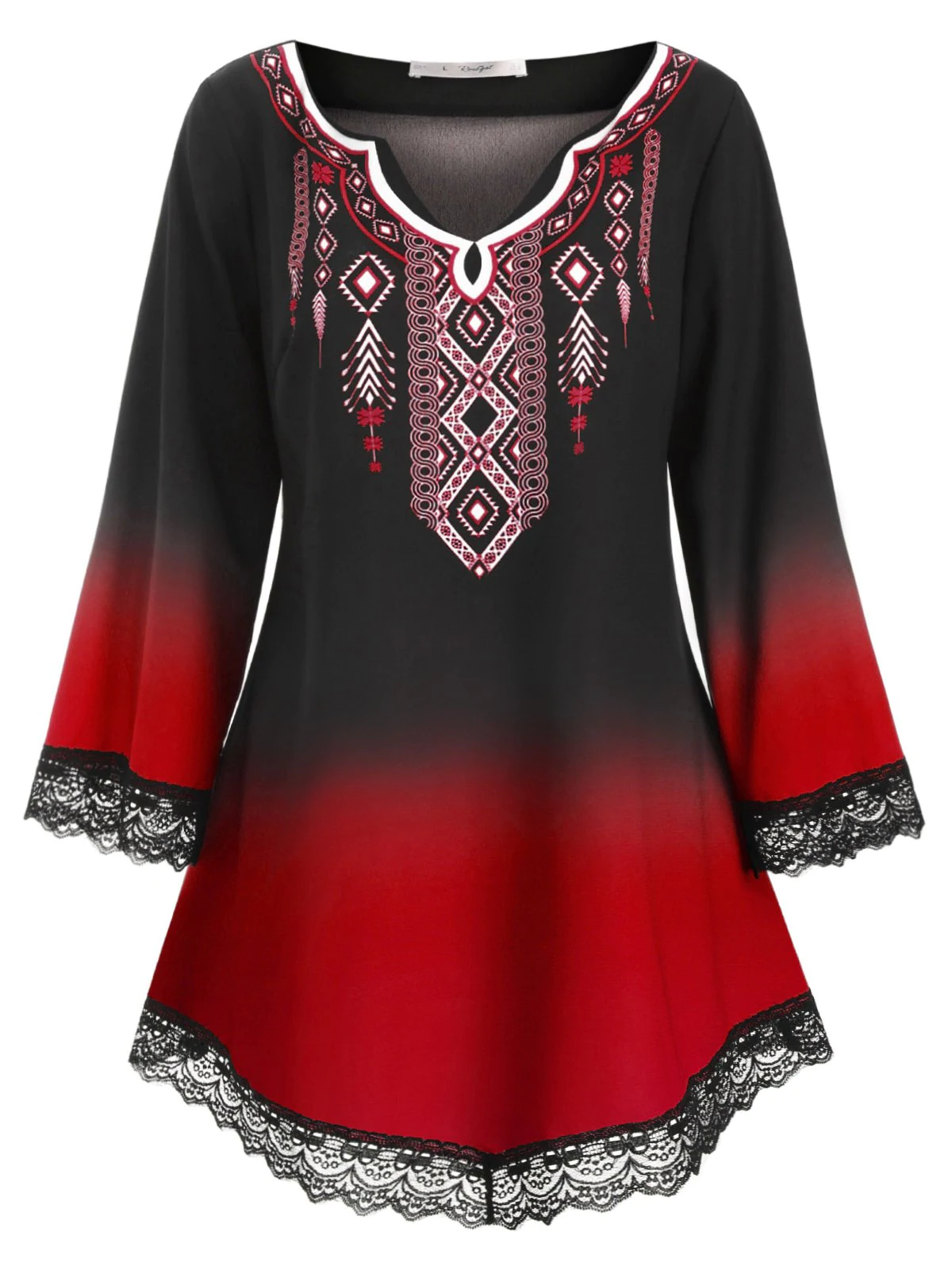 With a perfect combination of the ombre design and boho print for a flattering look, this plus size top is finished with a panel of the lace texture and the charming sweetheart neckline for an edgy feminine style that you will love at first sight.