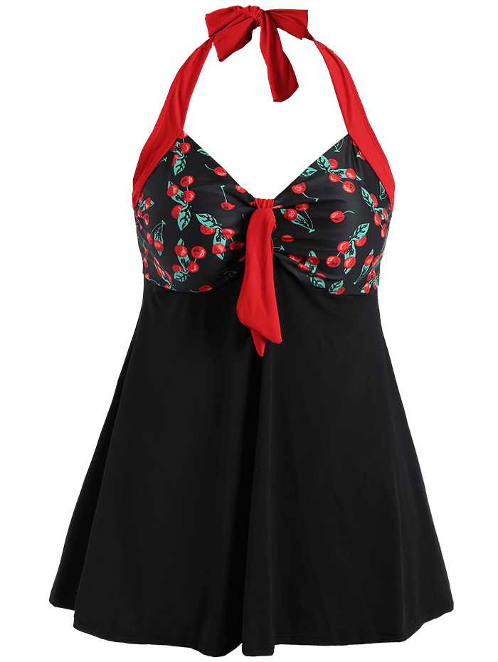 Retro Plus Size Halter Cherry Tankini Set