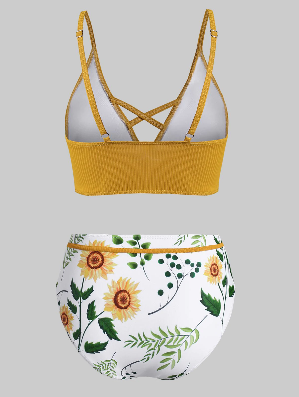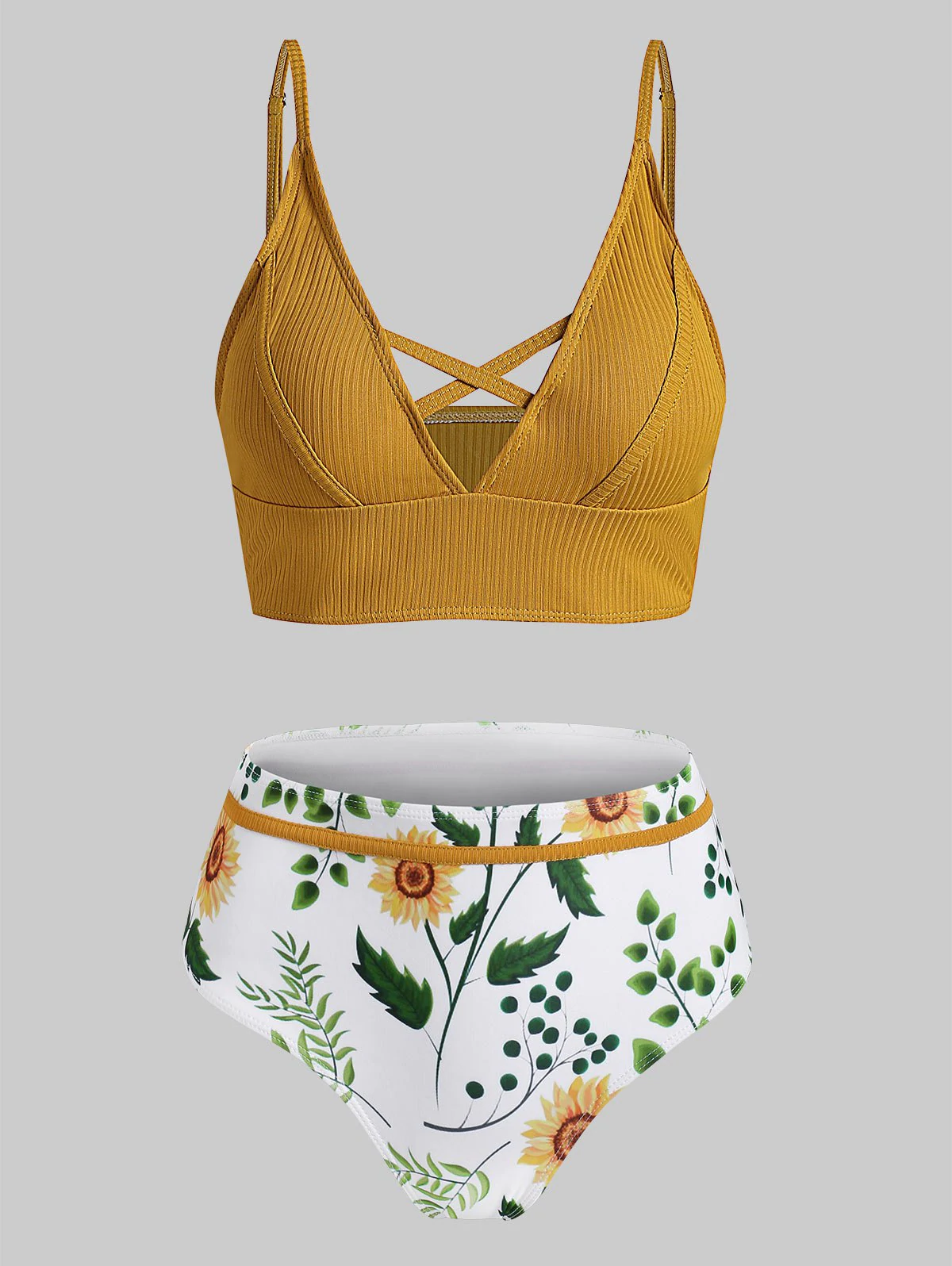 Ribbed Sunflower Crisscross Bikini Swimwear
