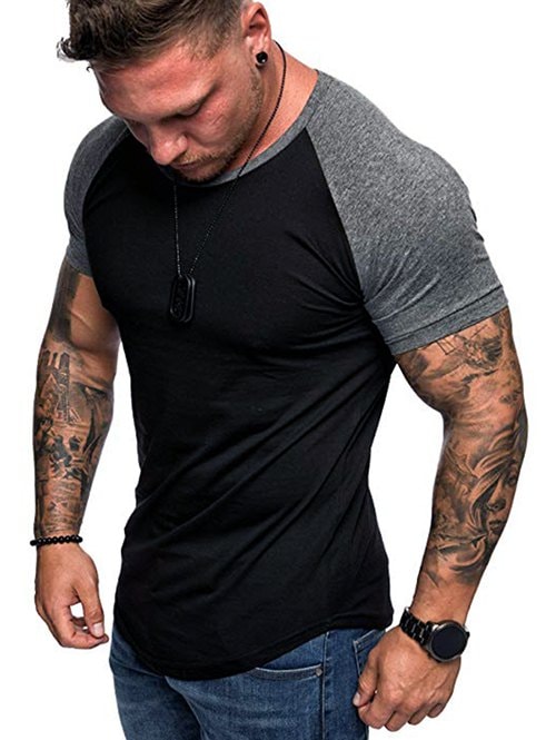 1 review for Round Neck Color Block Panel Short Sleeves T-shirt