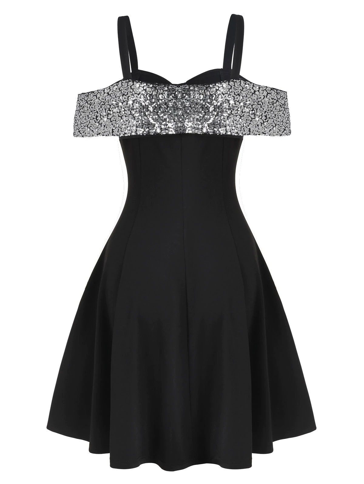 Sequin Panel Open Shoulder Skater Dress