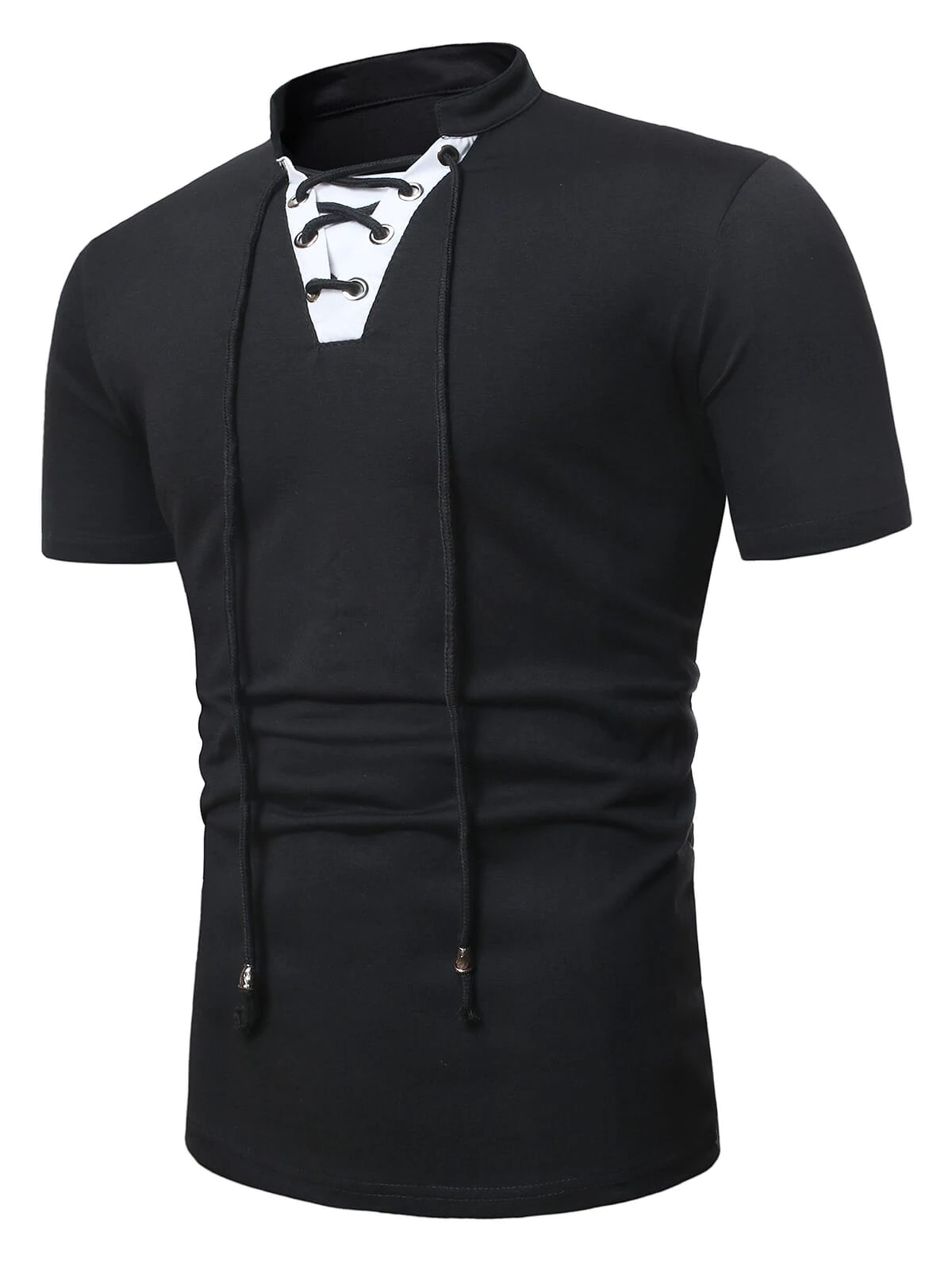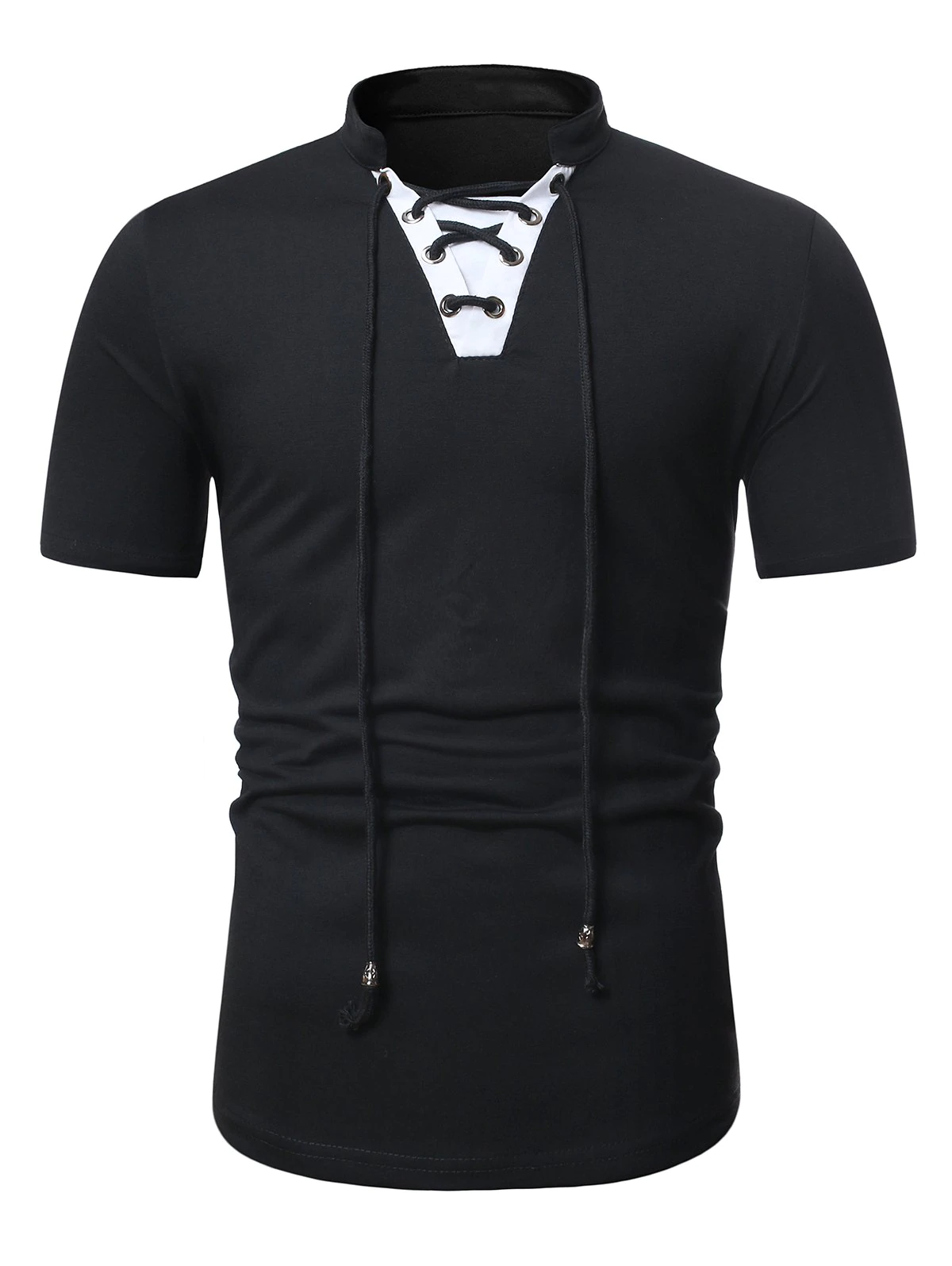 Short Sleeve Lace-up Contrast T-shirt
