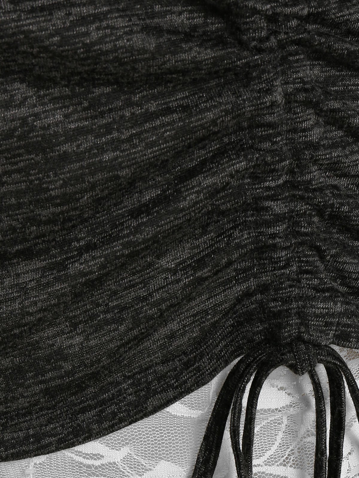Skull Lace Pattern Cinched Hem Two Piece T Shirt