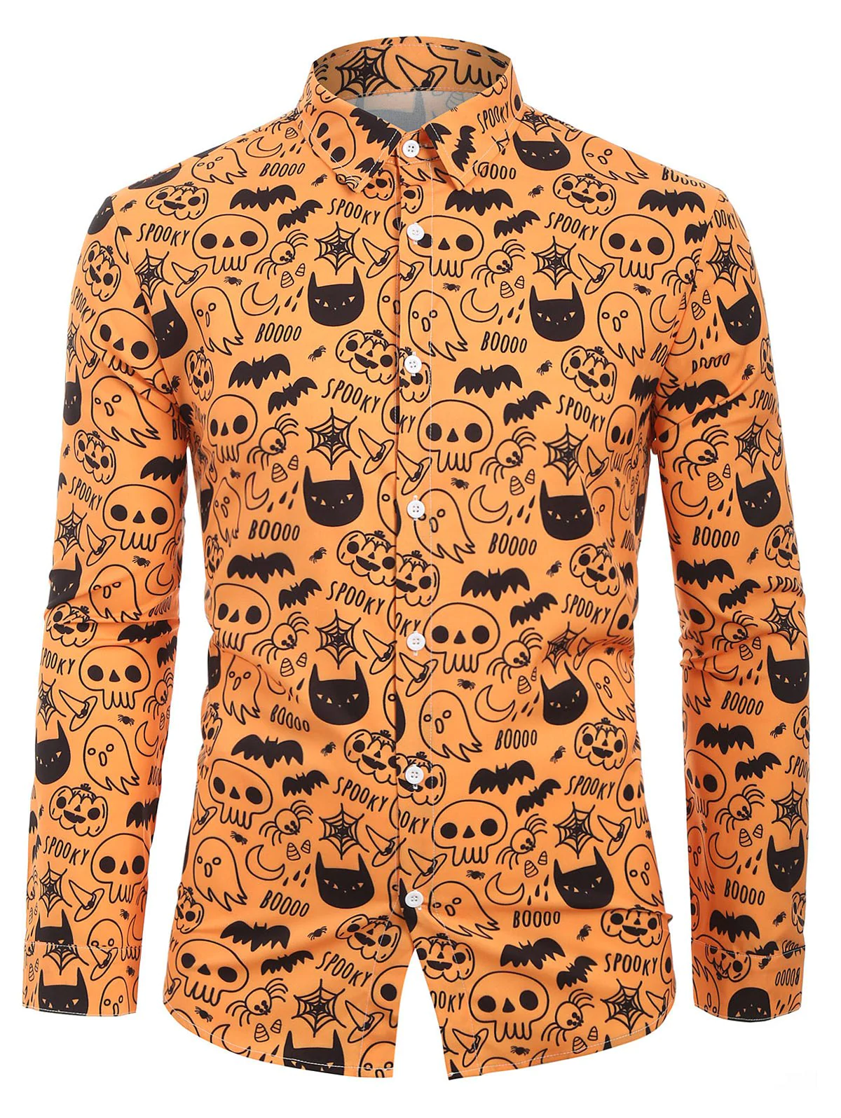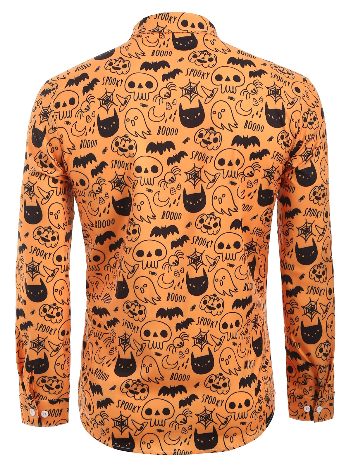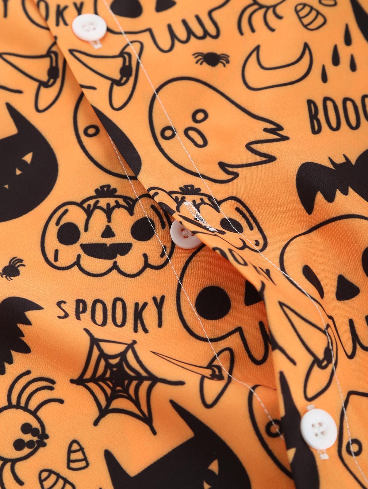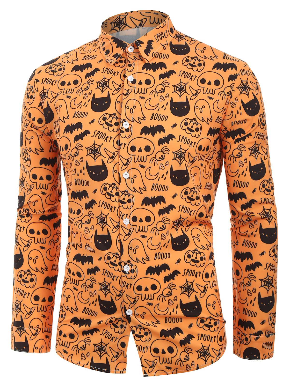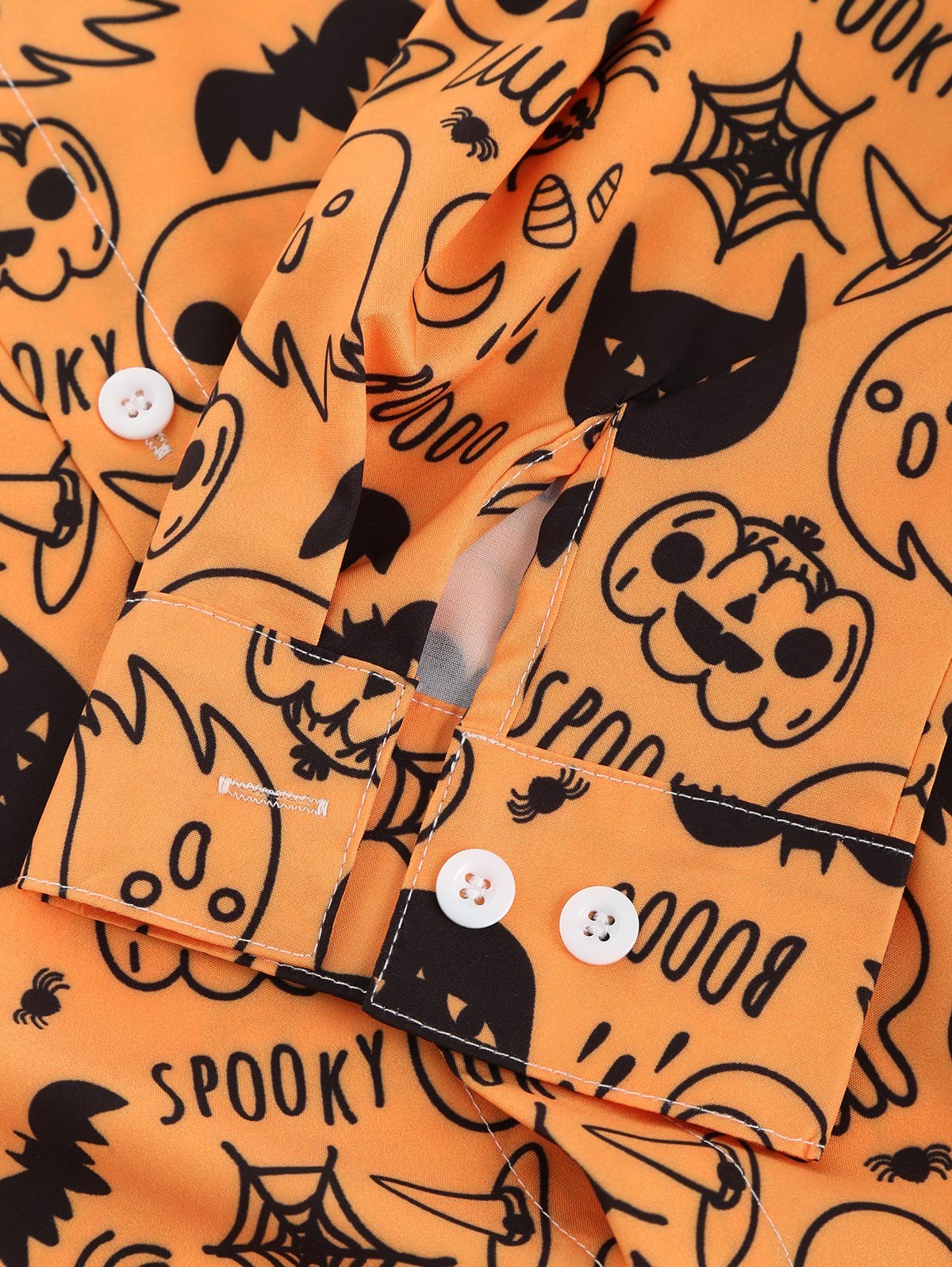 Skull Pumpkin Spider Cat Print Halloween Shirt