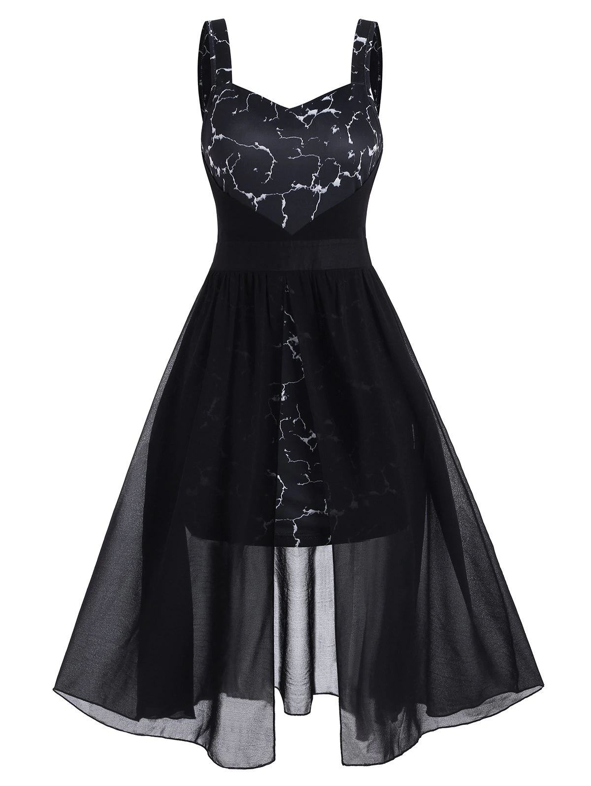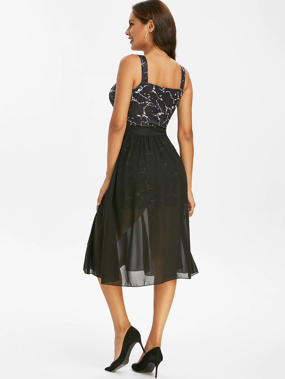 3 reviews for Sleeveless Marble Print Slit Front Overlay Dress