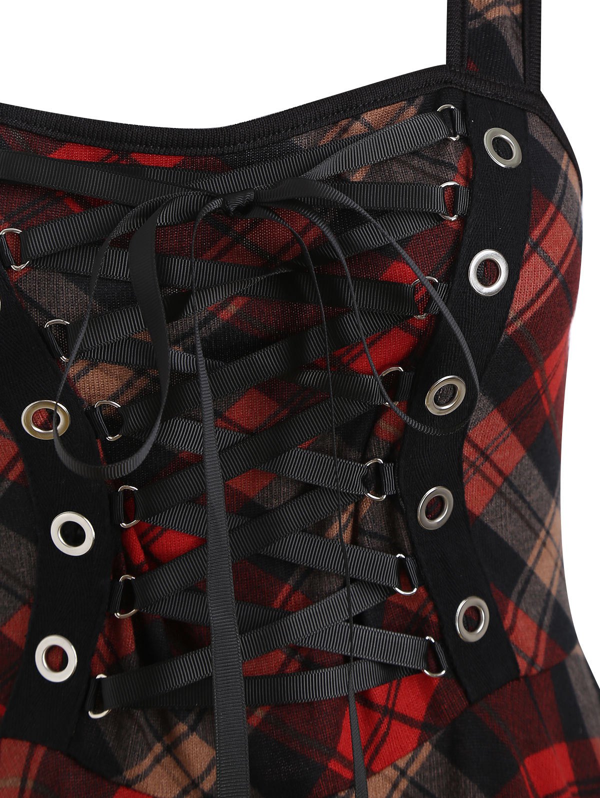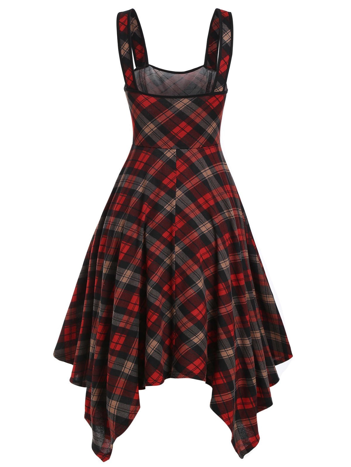 Sleeveless Plaid Print Lace-up Handkerchief Dress