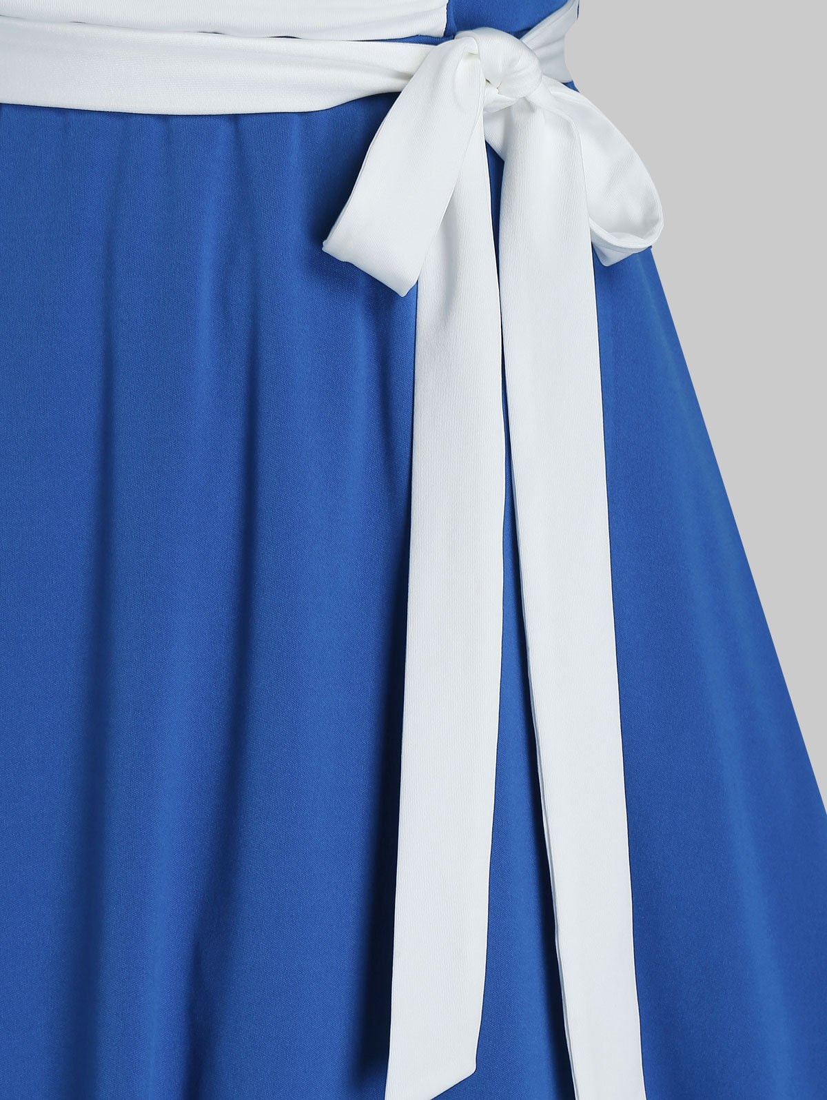 Wandering in the garden or dating with your friends in the Dress! This sweet dress features sleeveless, contrast ruched bodice. Belted waist transition into a flirty flare skirt.