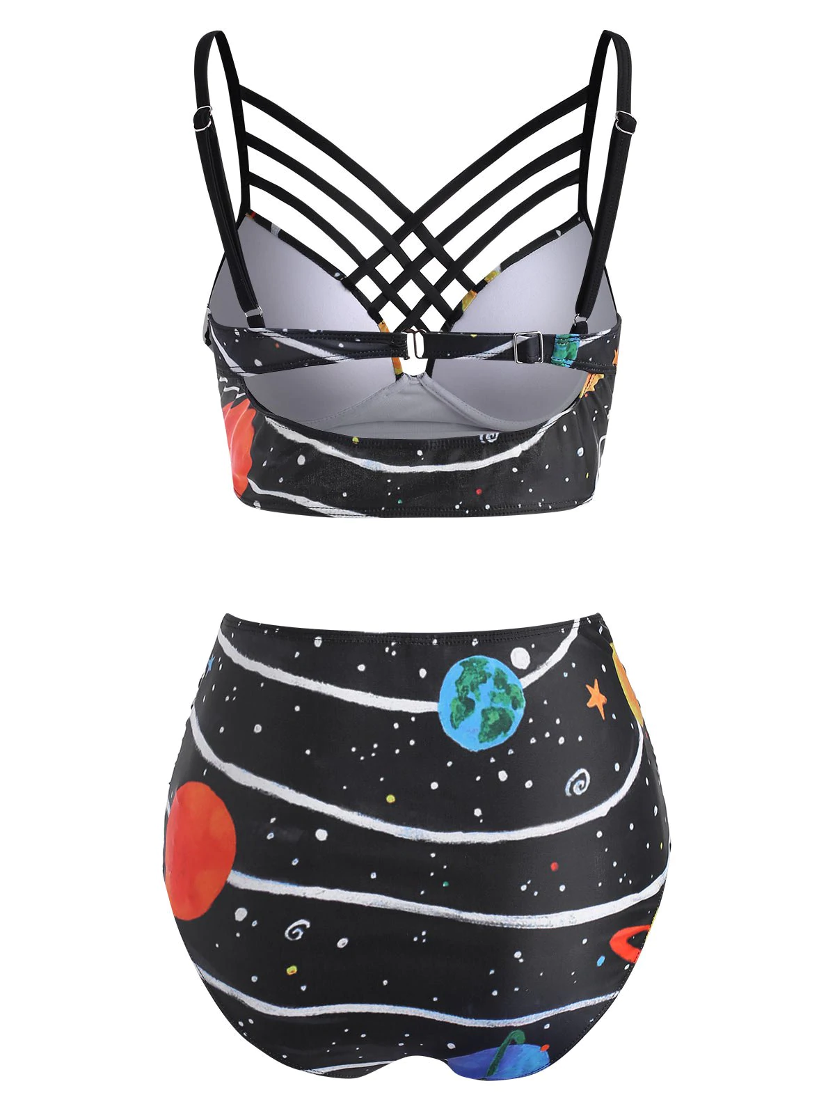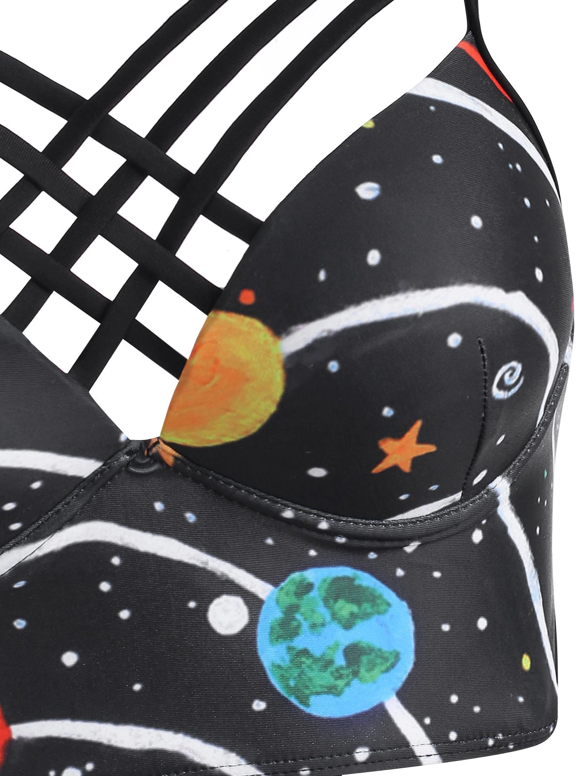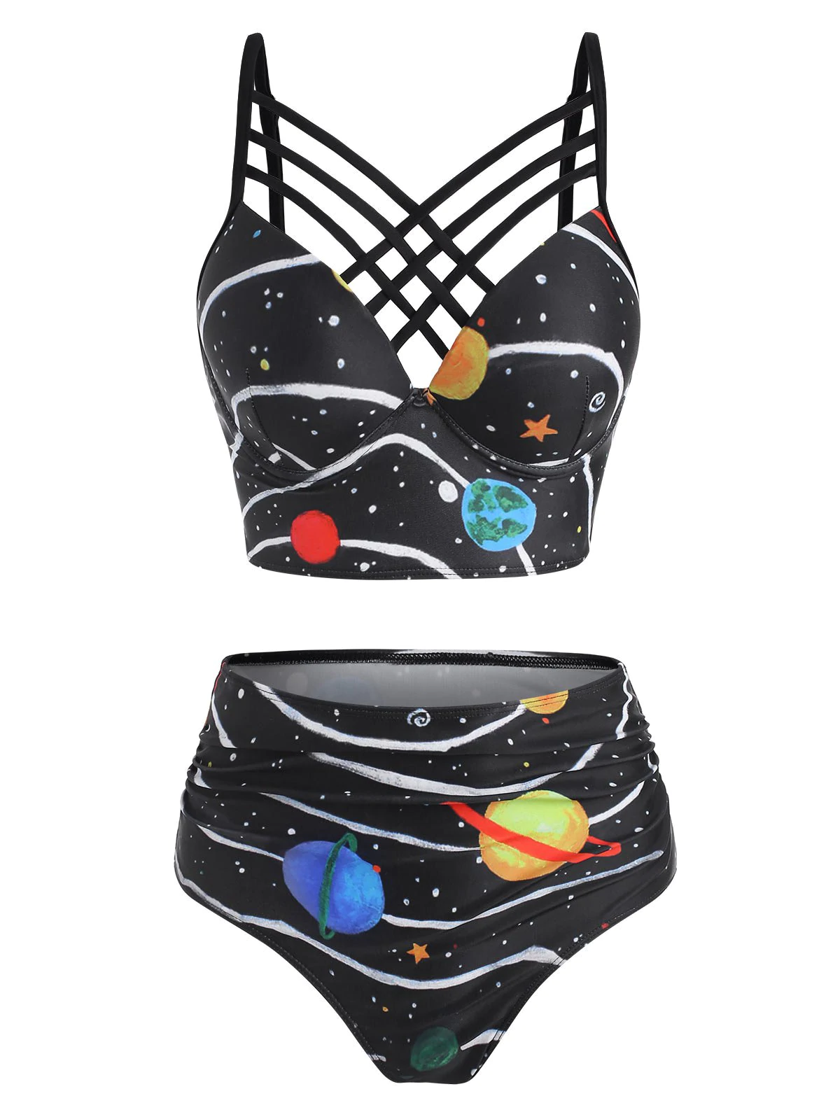 Star Planet Galaxy Print Caged Underwire Tankini Swimwear