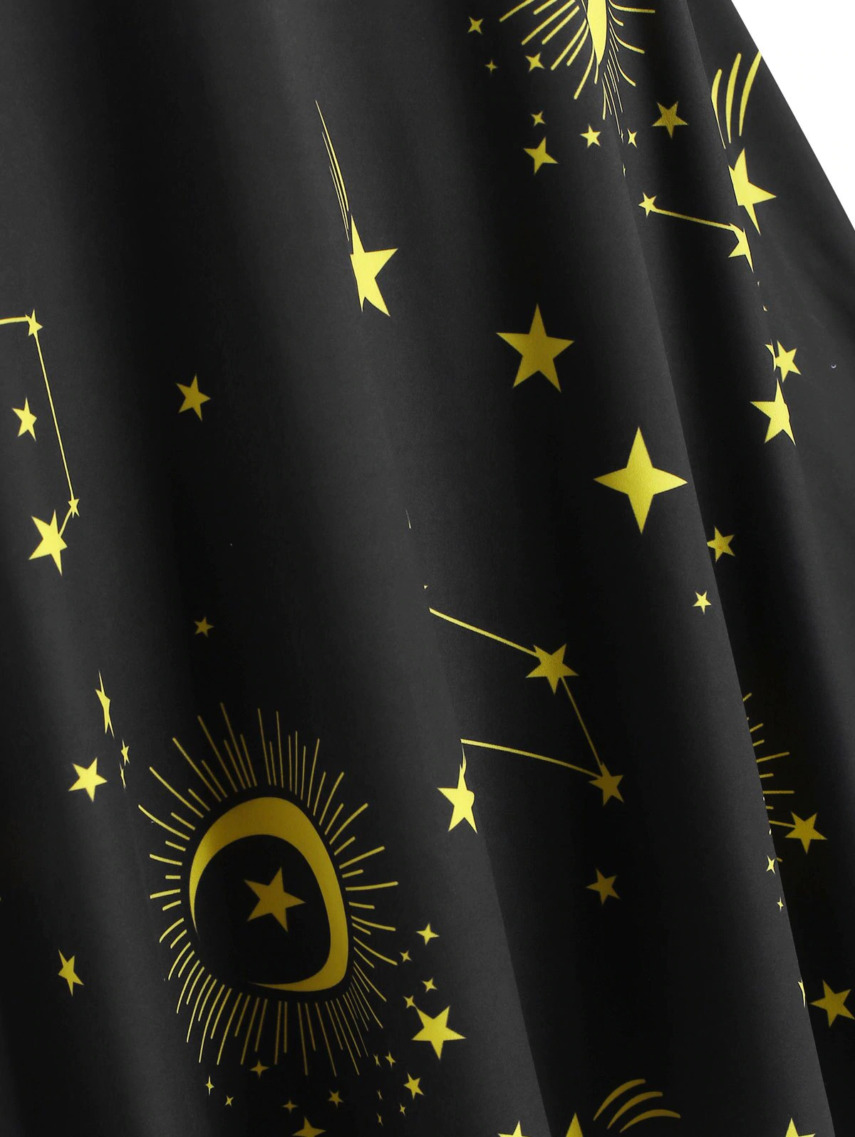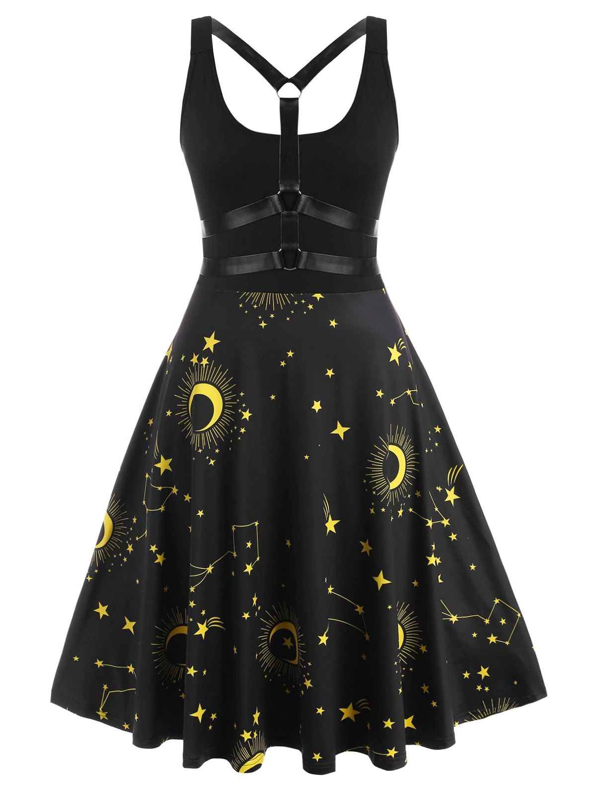 Strappy Back O-ring Star Moon Print Plus Size Dress