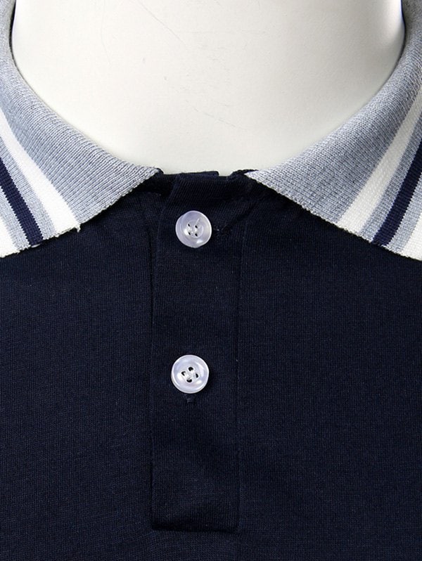 Striped Turndown Collar Short Sleeve Casual T Shirt