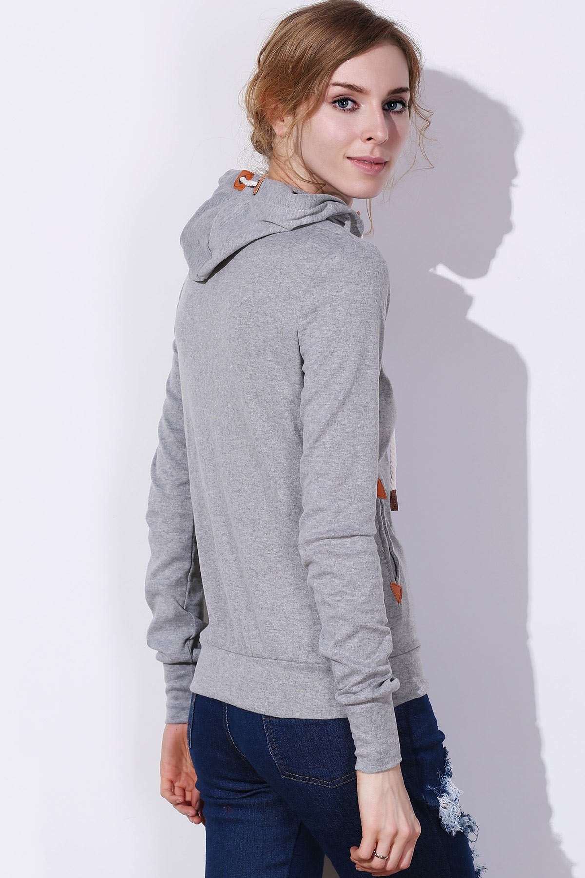 Stylish Hooded Long Sleeve Spliced Draped Women’s Hoodie