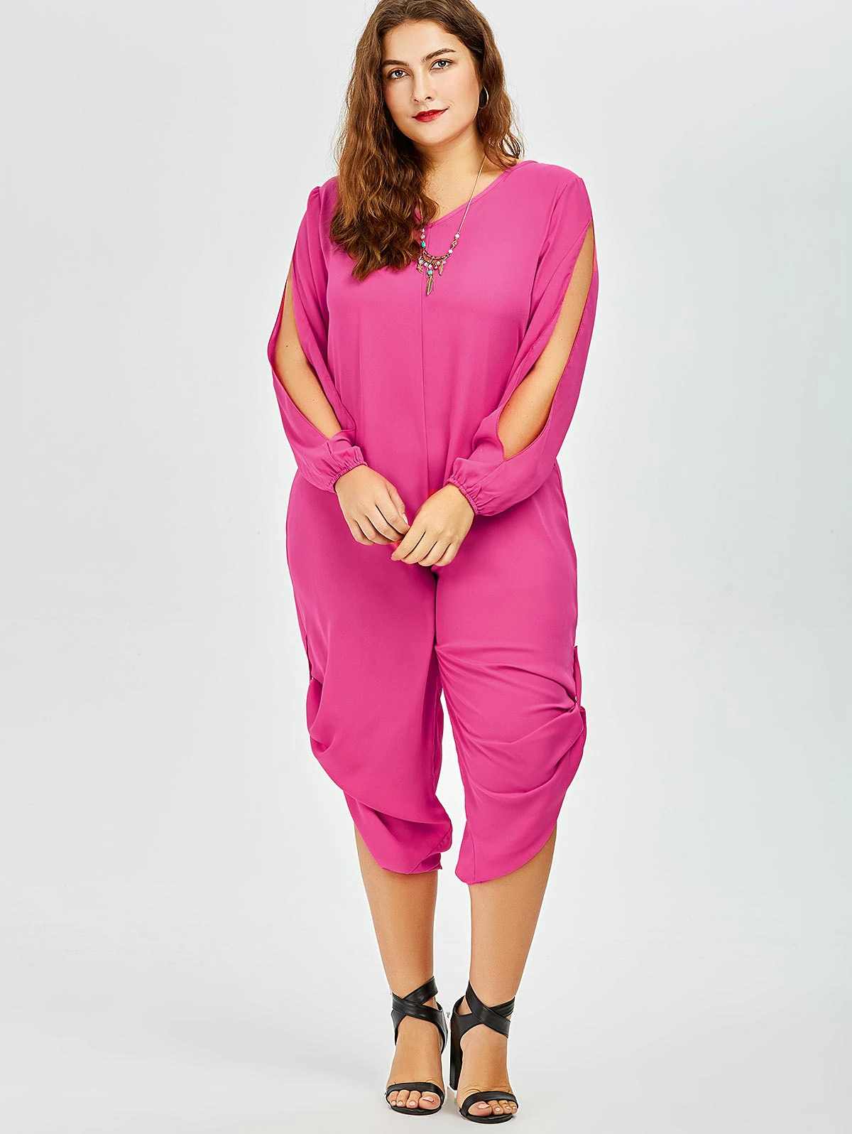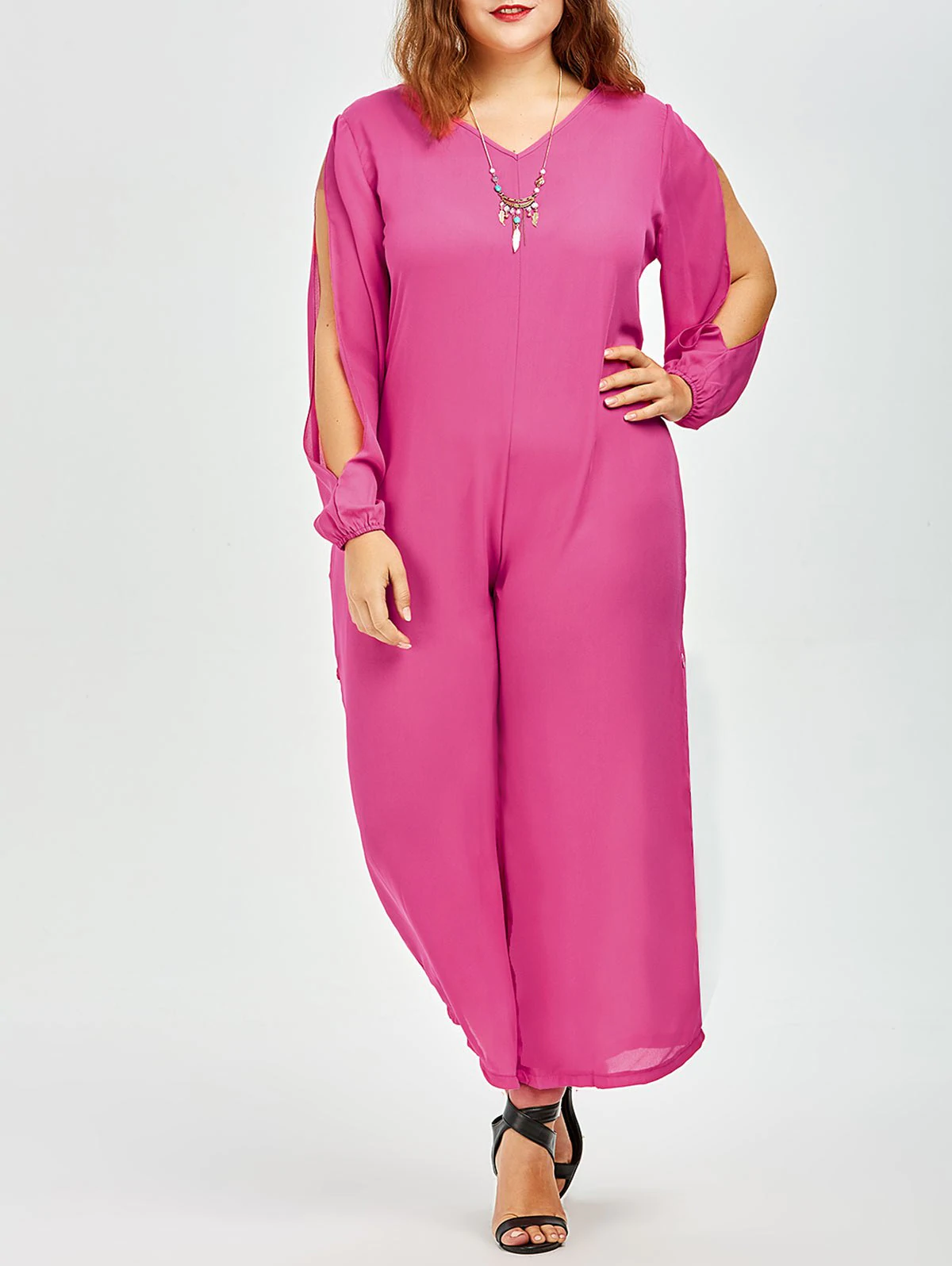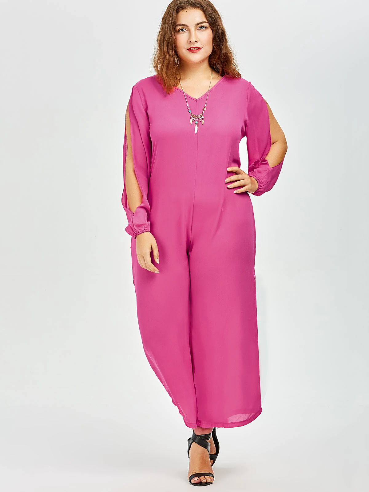 Stylish V-Neck Long Sleeve Plus Size Cut Out Women’s Jumpsuit