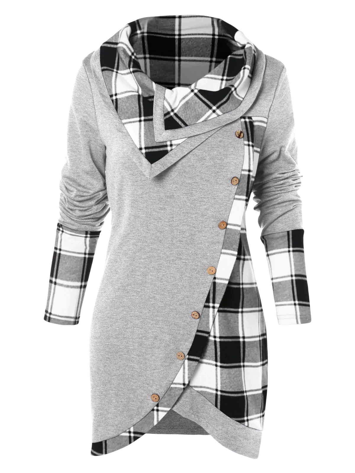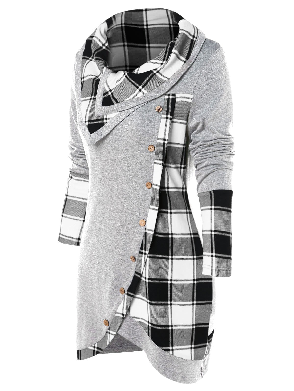 Tartan Panel Cowl Neck Tulip Front T-shirt