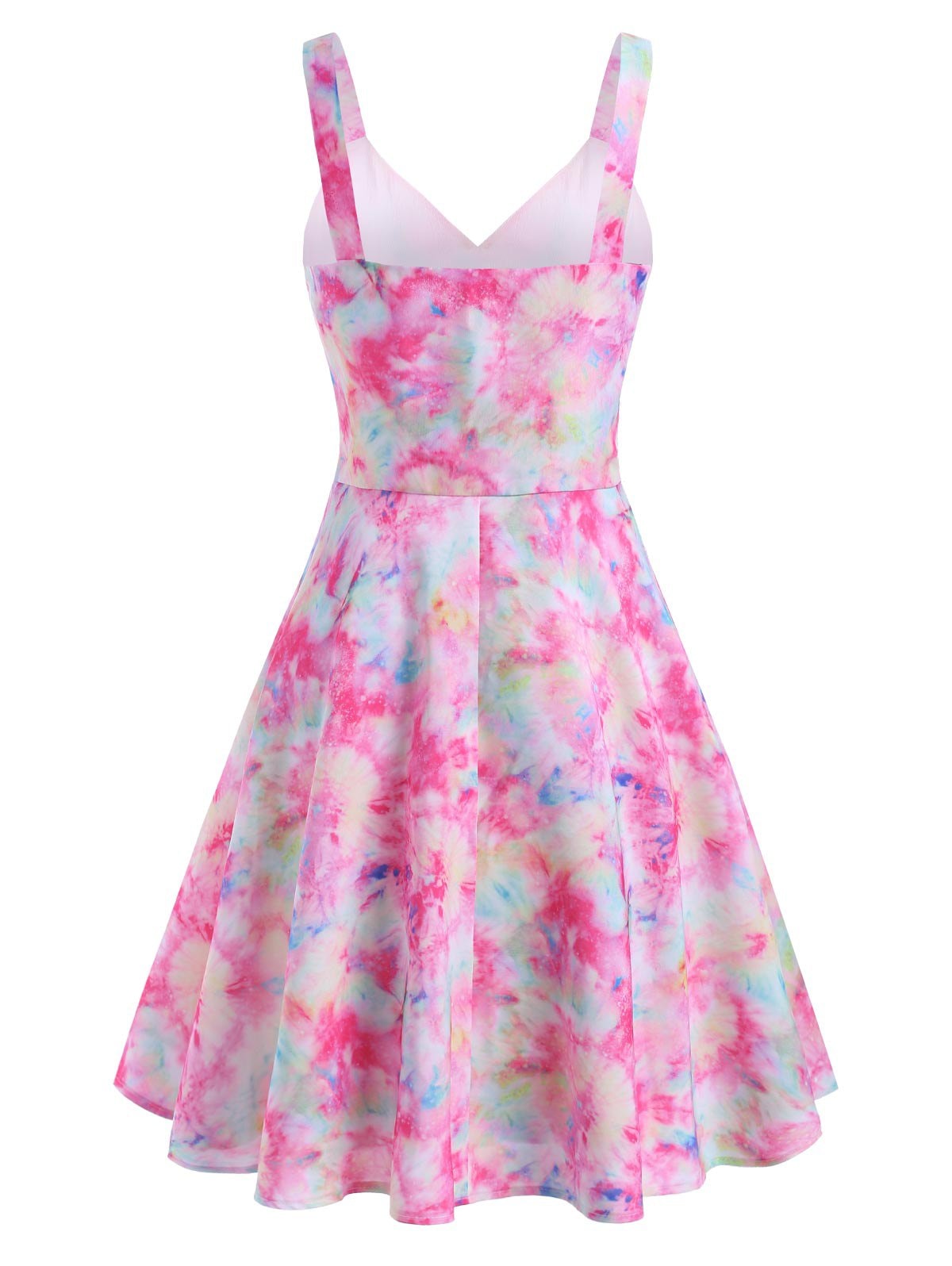 Your vibrant side can be shown through the bright tie-dye pattern, and your charming figure can be shown by the princess seams! Wide shoulder straps offer adequate support, and create a chic V-neck, as well as an alluring open back.