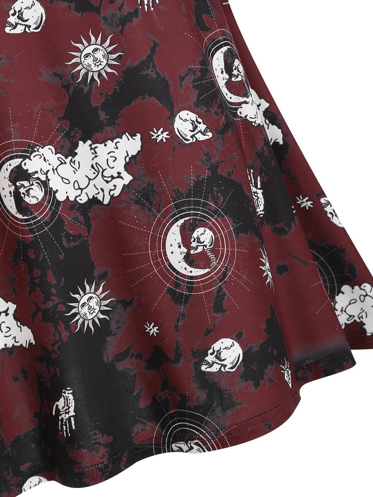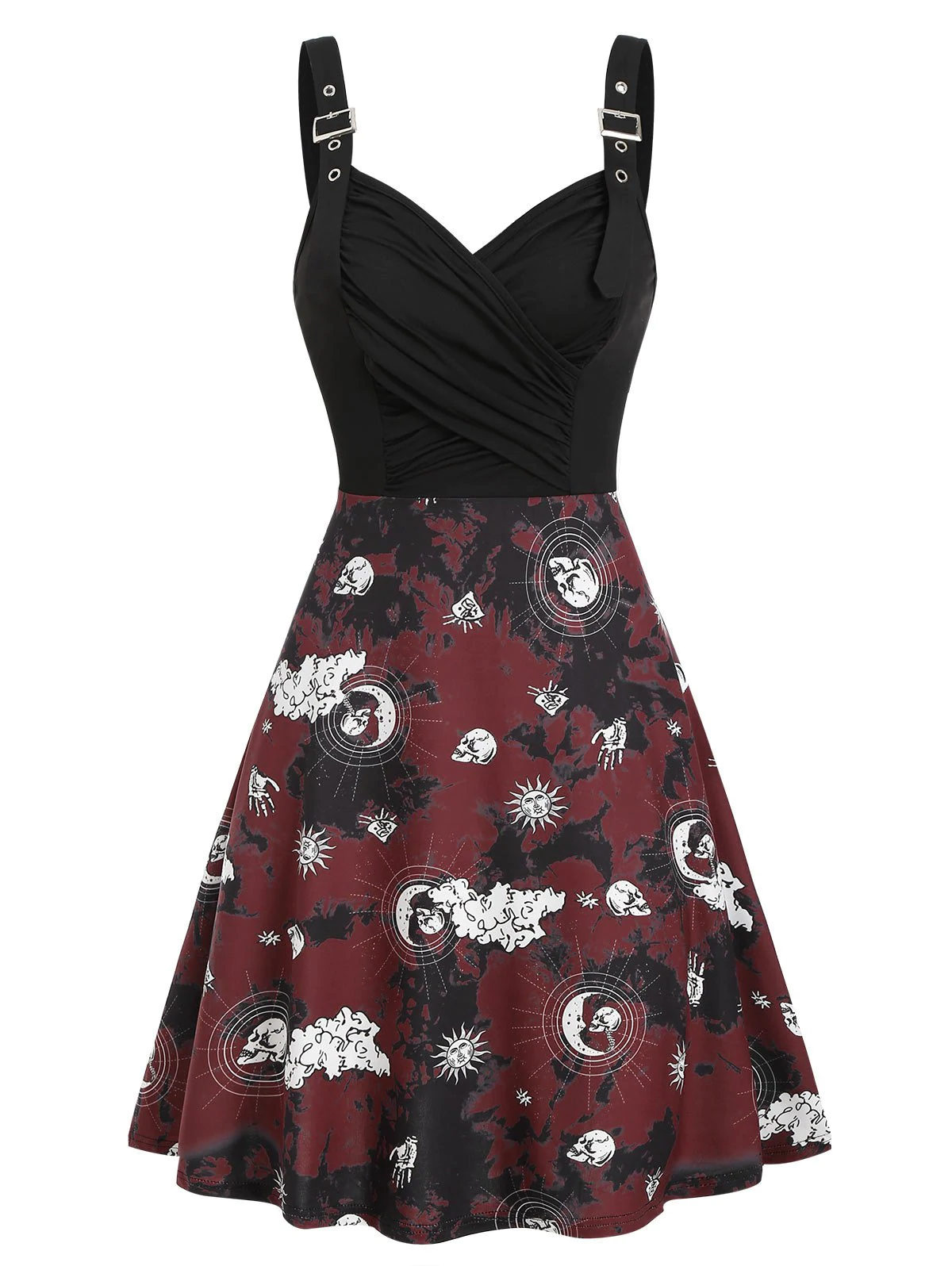 Tie Dye Skull Sun Moon Print Ruched Gothic Cami Dress