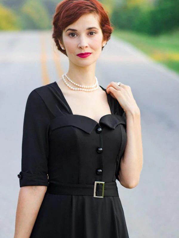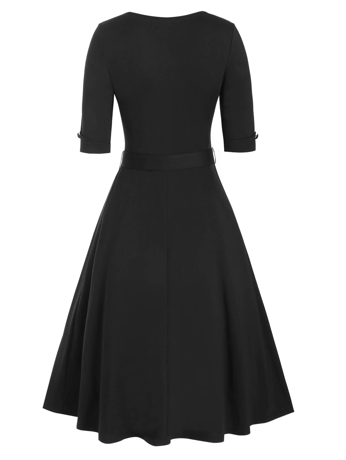 Vintage Half Button Belted Flare Dress