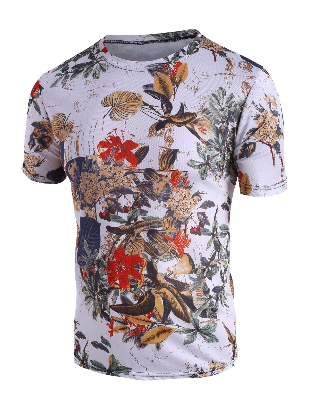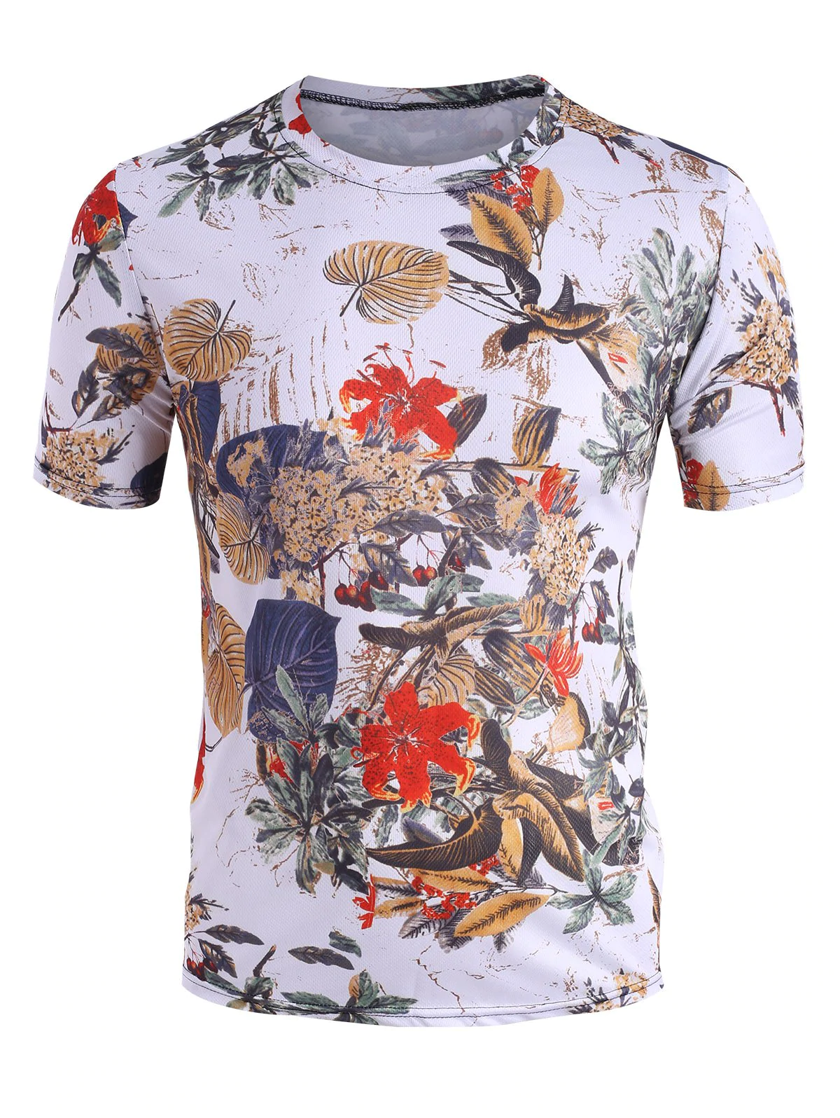Vintage Leaves Print Crew Neck T Shirt