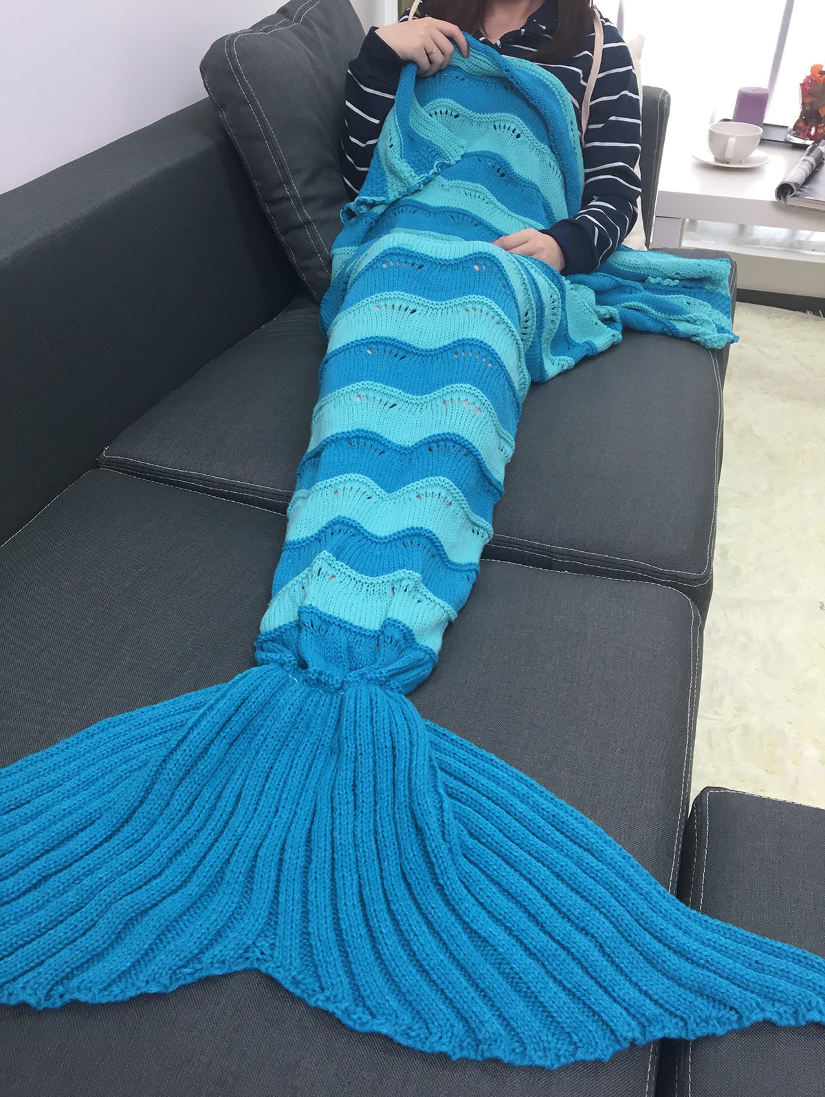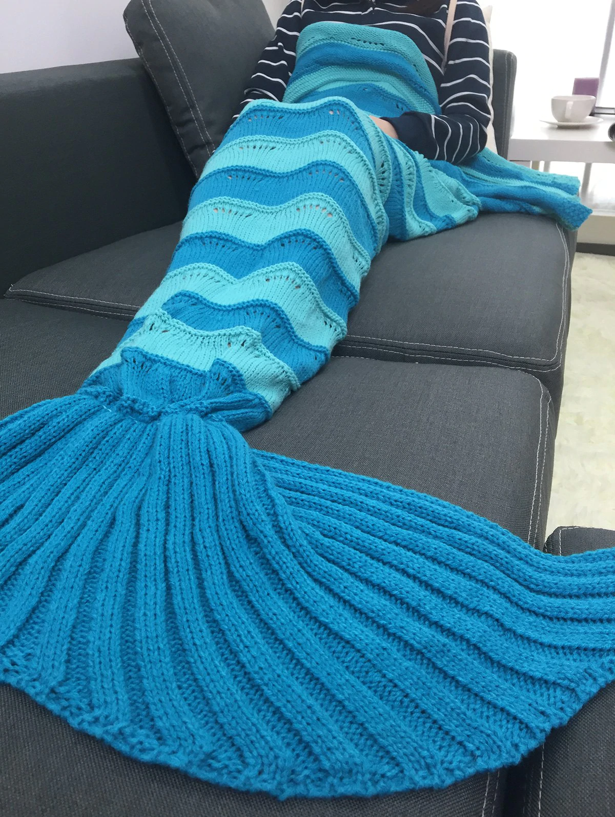 Warmth Stripe Pattern Knitting Mermaid Tail Blanket
