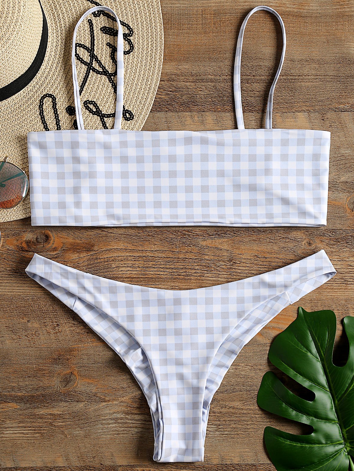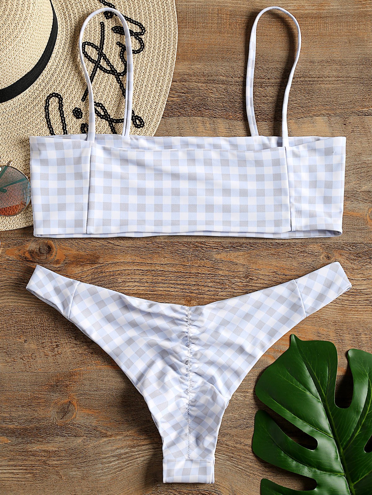 Take a walk on the wild side with this Fresh Bandeau Bikini which embodies the plaid trend currently adored by many fashion houses. The bandeau style offers structure and comfort with an elastic straps, no-padded and no-wire design offering totally freeable. High leg bikini bottom features scrunched on the back and keeps less coverage. Get this lovely but retro bikini and have fun with your friends on poolside or beach.