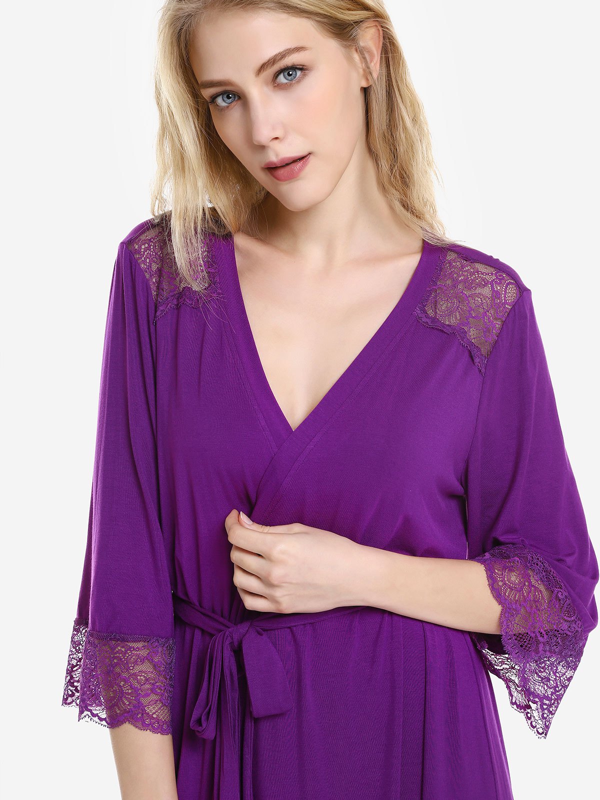 3 reviews for ZAN.STYLE Front Open Nightgown Belt Sleepwear