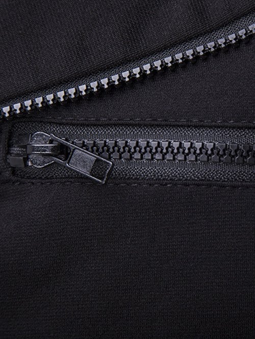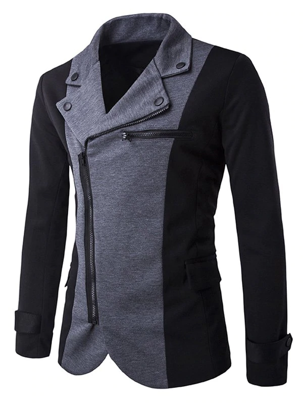 Zipper Design Turndown Collar Color Block Spliced Jacket