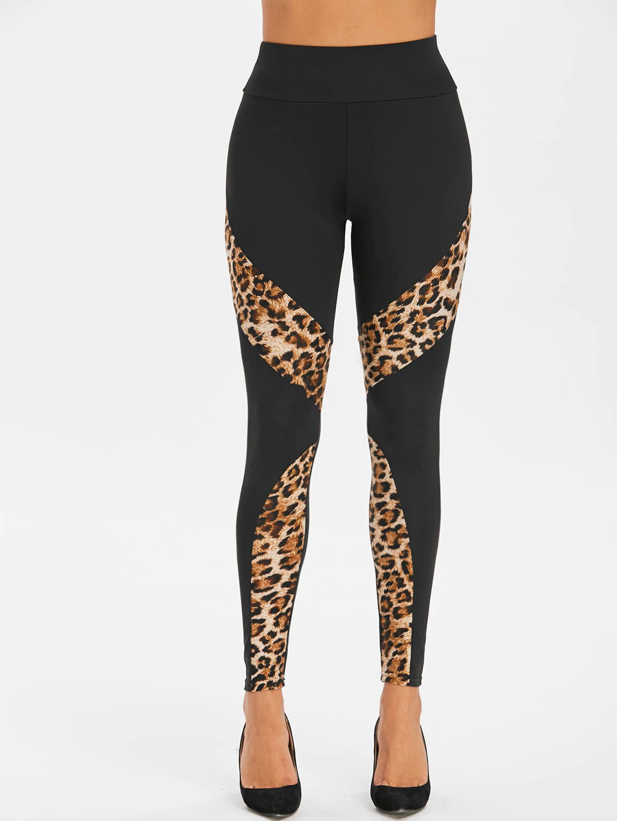 Zippered Leopard Panel High Waisted Leggings