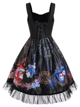 Style: Fashion Occasion: Day,Prom,Semi Formal Material: Polyester Silhouette: A-Line Dresses Length: Knee-Length Neckline: Sweetheart Neck Sleeve Length: Sleeveless Waist: High Waisted Embellishment: Lace,Lace up Pattern Type: Print With Belt: No Season: Fall,Spring,Summer Weight: 0.3350kg Package Contents: 1 x Dress