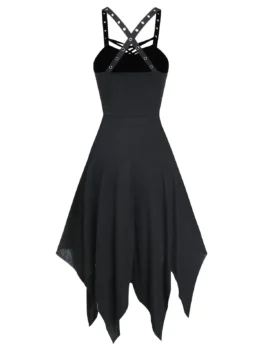 Style: Fashion,Gothic Occasion: Going Out,Night Out Material: Polyester,Rayon Silhouette: A-Line Dresses Length: Mid-Calf Neckline: Sweetheart Neck Sleeve Length: Sleeveless Embellishment: Lace up Pattern Type: Solid With Belt: No Season: Summer Weight: 0.3000kg Package Contents: 1 x Dress